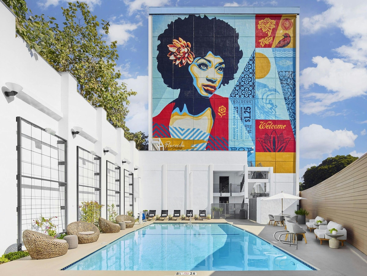 Խթանեք բացահայտման ձեր սերը բուտիկ - հյուրանոցում, որը գտնվում է Կալիֆոռնիա նահանգի Սանտա Մոնիկա քաղաքի լողափի մոտակայքում և նայում է դեպի Խաղաղ օվկիանոս և Սանտա Մոնիկա լեռներ ։ Տեսարժան վայրերը մոտակայքում են ՝ ✔Շքեղ տեսարաններ Պալիսեյդս զբոսայգում ✔Ցնցող տեսարաններ Սանտա Մոնիկա Պիերում ✔Ամենամեծ ավտոմոբիլային հավաքածուները Պետերսենի ավտոմոբիլային թանգարանում Բնական և մշակութային աշխարհների✔ հրաշալիքները Բնագիտության պատմության թանգարանում ✔Խճանկարային սալիկապատ տուն ՝ գունագեղ թիլանի տպավորիչ կոլաժ