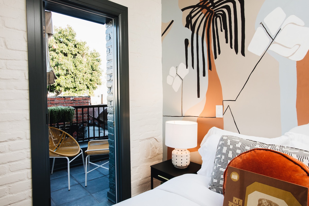Այս հաճելիորեն կոմպակտ սենյակում տեղական նկարիչ Քրիստի Հեդի ձեռքով նկարած որմնանկարն է։ Քունեք մեծ մահճակալում կամ արևայրուք եղեք մեր միակ պատշգամբում։ Ներսում ձեզ կսպասի կասետային նվագարկիչ և հնաոճ կասետներ, որոնք կտանեն 80-ականներ։ Աղմուկի մակարդակը՝ ցածր – միջին Գտնվելու վայրը՝ վերին հարկ Դիտել ՝ քաղաքը