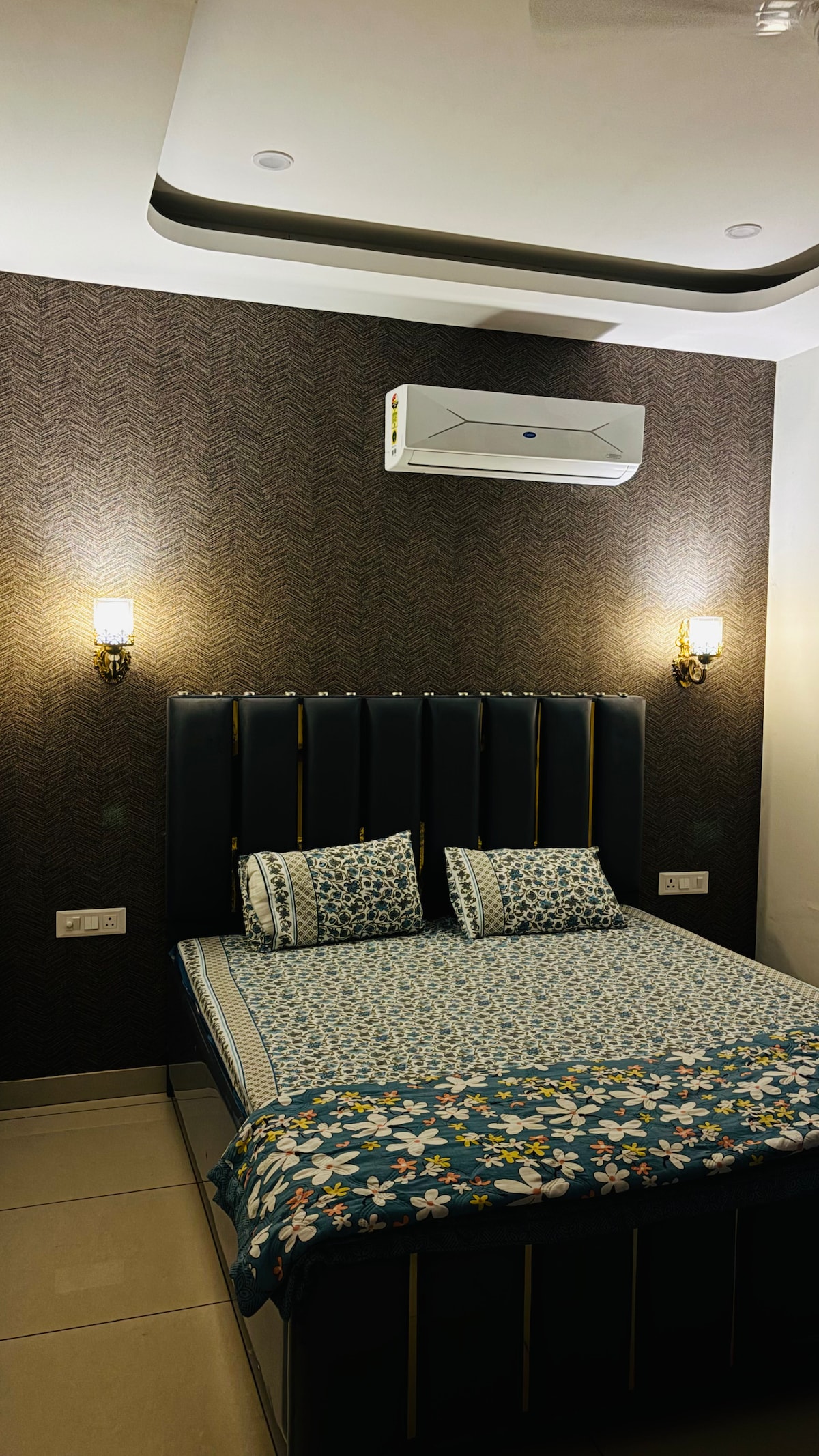 Welcome to Golden Heaven, a luxurious oasis! 🏰✨ Our stunning drawing room features rich golden wallpaper and plush ethnic sofas, exuding warmth and sophistication. The flat is lavishly furnished with Italian marble, creating a regal ambiance. As a brand-new flat, you'll be the first to experience its grandeur. Conveniently located near Airport Road and Paras Downtown Mall, you're close to shopping, dining, and travel. Book now and indulge in luxury! 💫