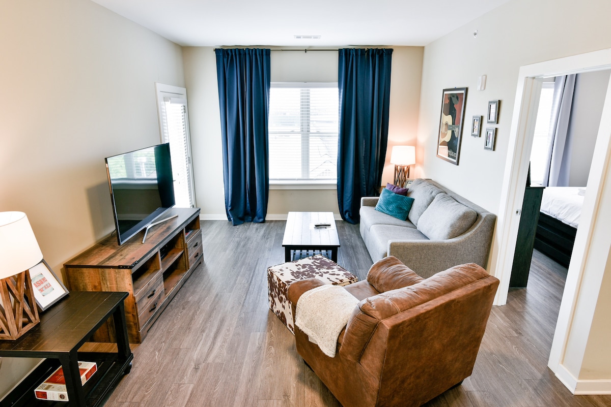 This 1 bedroom downtown condo has an urban look with trendy West Elm furnishings and local Nashville touches. It offers a King size bed in the bedroom and 1 Queen pull out sleeper sofa. This space is ideal for business travelers and couples. For your convenience we provide light snacks and coffee. We offer two large 50+ inch Smart TVs. We also offer Fiber internet to stream your favorite shows. Our goal is to make you feel as if you are in your home away from home. STRP Permit #2018072939.