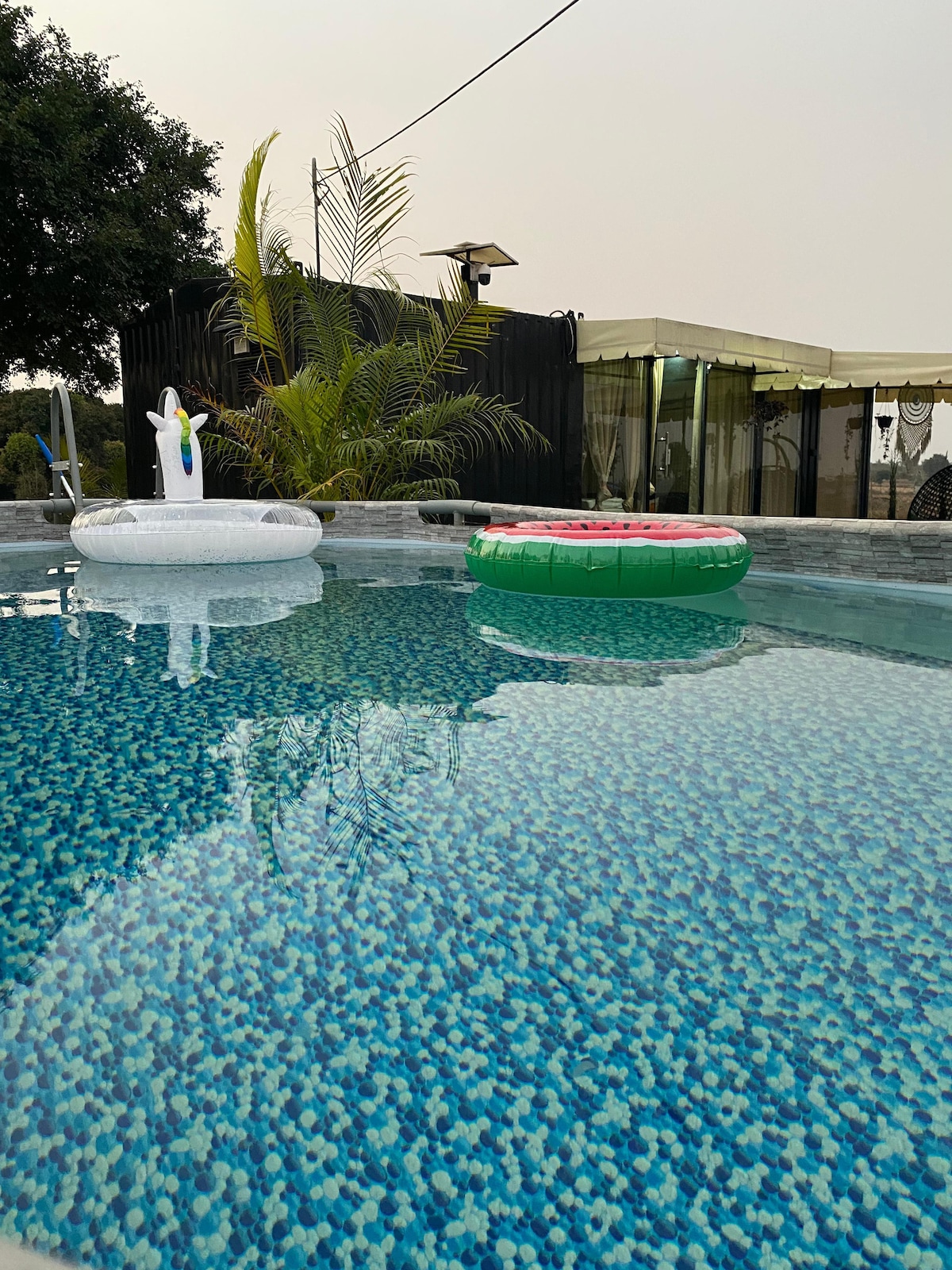 Birthdays,Bachelorettes or just a fun-filled day with friends-Be our guest!We cater from decorations to unforgettable celebrations. Indulge in a romantic candlelit dinner or enjoy a mouthwatering barbecue by the pool or meet ups with your old buddies , watching cricket match on big screen by the pool with your frnds. exclusive movie screening.make lasting memories in a poolside that’s all about you!(Additional charges apply for food and other offerings.Airbnb charges are for accommodation only)