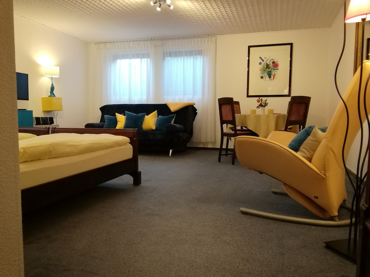 Նստեք և հանգստացեք... Մեր մեկ սենյականոց բնակարանը ստեղծվել է միայն բնական շինանյութերով ։ Մանրուքների նկատմամբ մեծ սիրով ՝ ես այստեղ մշակել եմ բնական սալաթ և կաղնու փայտ ։ Բարձրորակ ինտերիերը հրավիրում է ձեզ հանգստանալու: Այստեղ ՝ Վոգելսբերգի դարպասի մոտ, «Mühlental» հրաբխի լեռնային հեծանվային արահետի մուտքն է ։ Հեծանիվների լիցքավորման կայան անմիջապես բնակարանում: Այնուհետև սաունա ՞ ն ։ Հետաքրքրվելու դեպքում հնարավոր է վազել իմ ԱՄՆ - ի ծերերի հետ ;-)
