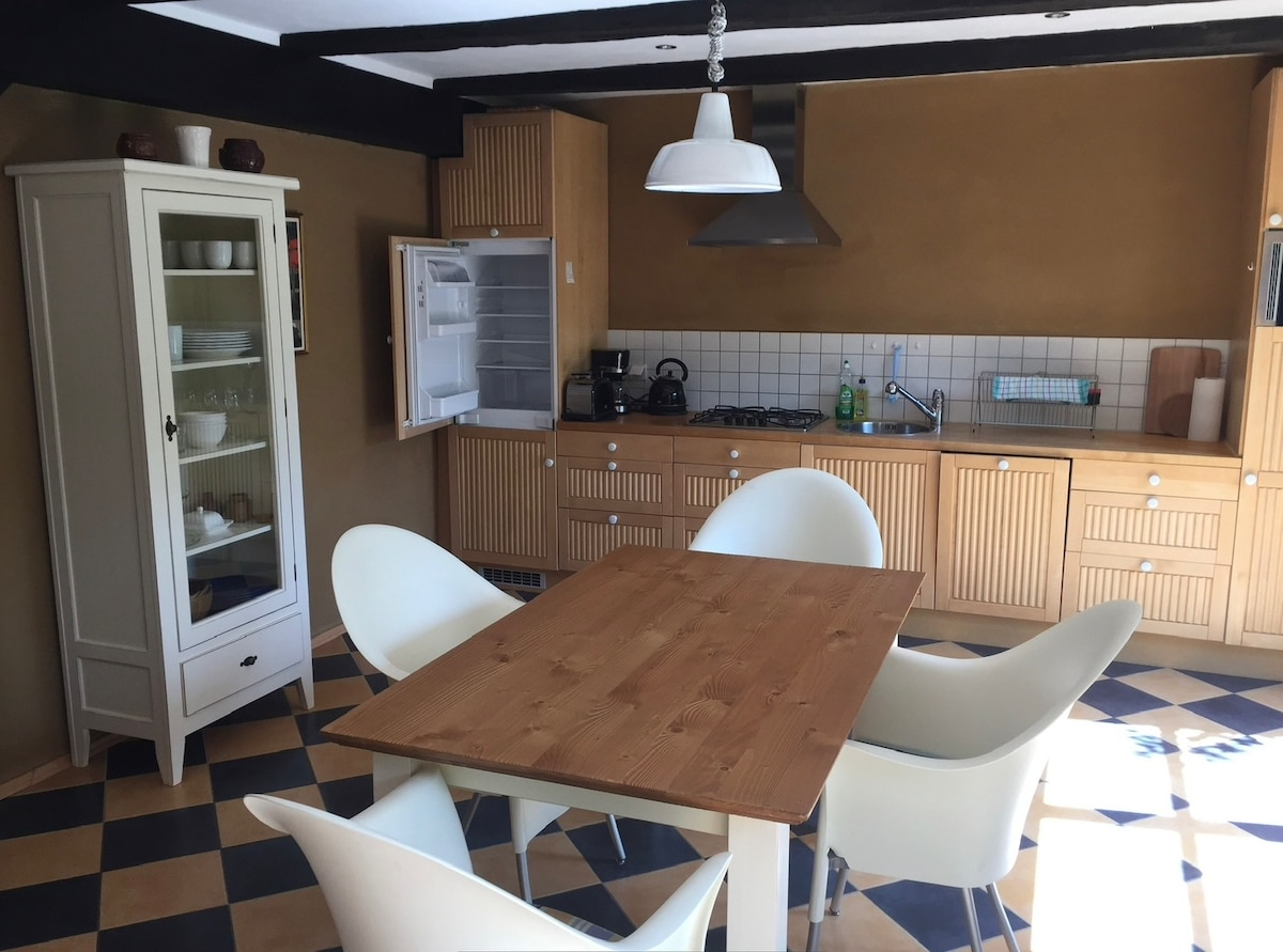 Haus Quitte - A house and garden with history for 8 adults and children. Travel back in time 250 years and let yourself be enchanted by an old thatched farmhouse, renovated to a high standard, surrounded by more than 8,000 m2 of paradisiacal garden with pool, pond and sauna. In the garden you will find many fruit trees to serve, special tree species, exotic roses and many cozy magical places to relax, linger, read and explore.