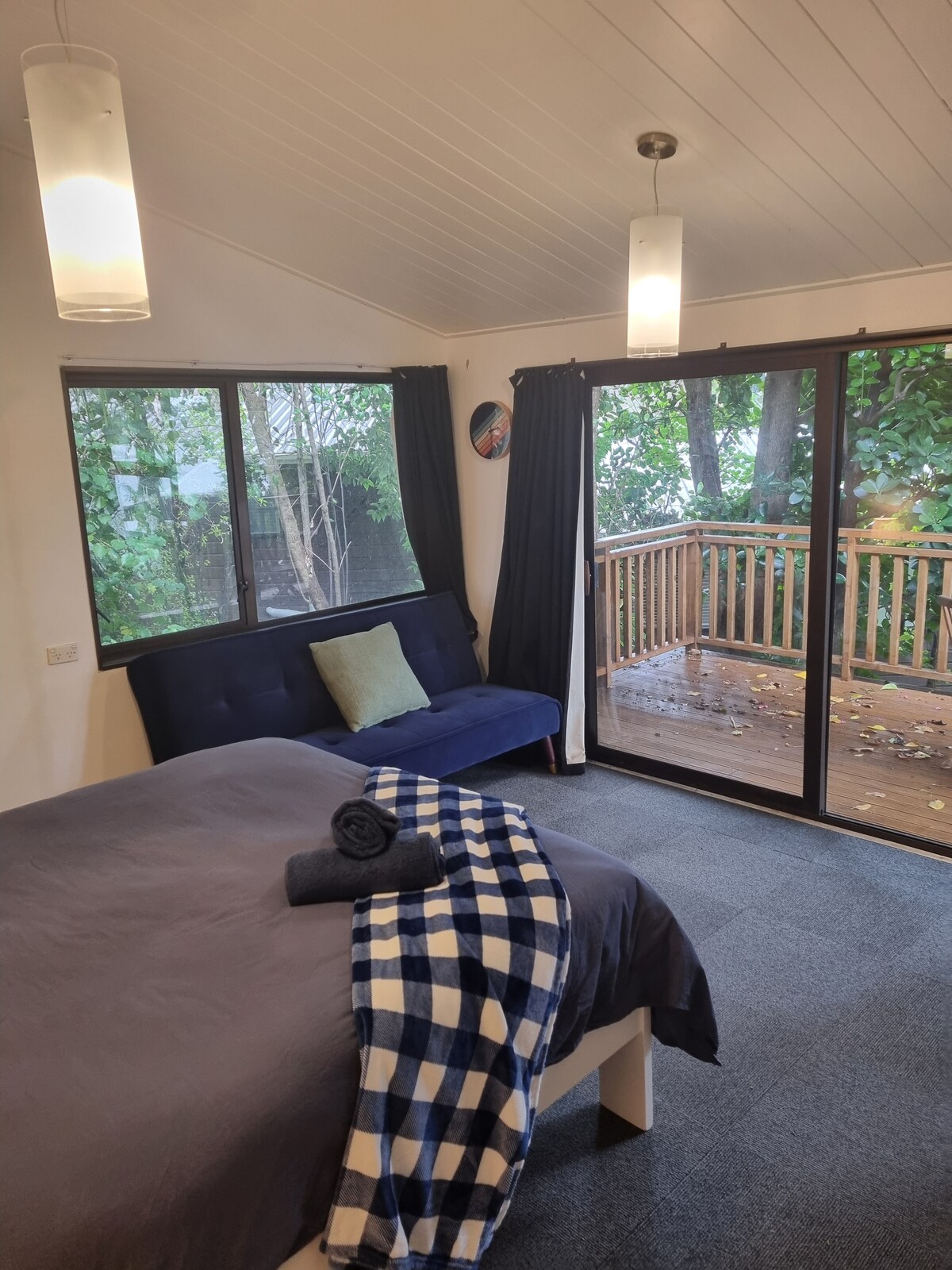 Վայելեք այս մասնավոր հյուրատունը ՝ ձեր սեփական տախտակամածով, որը նայում է դեպի թփուտը ։ Հիանալի մուտք դեպի քաղաքի և Հյուսիսային ափի լողափեր ՝ բնակարանը հեշտությամբ հասանելի է Օքլենդ Սիթիից և հարակից արվարձաններից ։ Մոտակայքում կան ռեստորաններ և սուպերմարկետ ճանապարհի երկայնքով Կա ավտոբուսի կանգառ հենց մեքենայի վերևում ՝ ձեզ կապելու գեղեցիկ Տակապունա լողափի, ինչպես նաև CBD - ի (Britomart) հետ: Այլապես ավտոբուսով ուղևորվեք դեպի Բիչ Հեյվեն և վայելեք լաստանավային ուղևորություն դեպի Քաղաք կամ Հոբսոնվիլ Փոյնթ ։