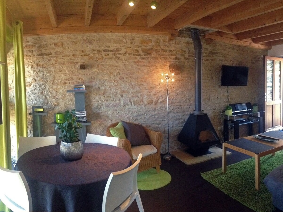 1 - ին հարկում գտնվող ընդարձակ ստուդիան ամբողջությամբ վերանորոգված է ։ Bresse sur Grosne - ը փոքրիկ գյուղ է, որը գտնվում է Չալոնից և Տուրնուսից 20 րոպե հեռավորության վրա, արագ և հեշտ մուտք դեպի Սեն Գենգոու լե Նալի միջնադարյան վայրը (4 կմ), Կորմատին ամրոցը (6 կմ, Տայզե (14 կմ), Կլունի ( 20 կմ) միջնադարյան վայրը: Բնակարանը ներառում է բոլոր հարմարությունները ՝ բաց խոհանոցով, 1 նստատեղով և 2 մահճակալով (140 և 90), լոգասենյակ ՝ ցնցուղով, ինչպես նաև կտուրով Ընդարձակ և հարմարավետ ստուդիա 3 հոգու համար վերևում (աստիճաններով)