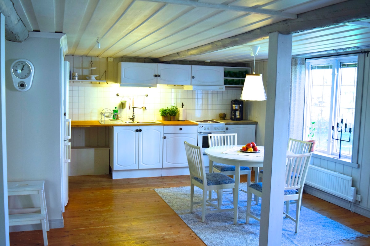 Հանգստացեք այս յուրօրինակ և հանգիստ բնակարանում, որը գտնվում է հենց ծովի ափին: Քոթեջը ունի վիլլայի բոլոր հարմարություններով, ինչպիսիք են՝ էլեկտրաէներգիան, ջեռուցումը, ջուրը, ցնցուղը և զուգարանը, ինչպես նաև լվացքի մեքենան: Խոհանոցը լիովին կահավորված է սպասք լվացող մեքենայով, միկրոալիքային վառարանով, օդային վառարանով և ինդուկցիոն սալիկով և այլն: Վայելեք տեսարանը, արևամուտը և գուցե մի փոքր հյուսիսային լույսերը: Արեք զբոսանք անտառում և հաճույքով նստեք բուխարիի առջև։ Կա սաունայի, այնուհետև թարմացնող ծովային լոգանքի հնարավորություն։ Կանոեն և 2 SUP-board-ը կարող եք վարձակալել: