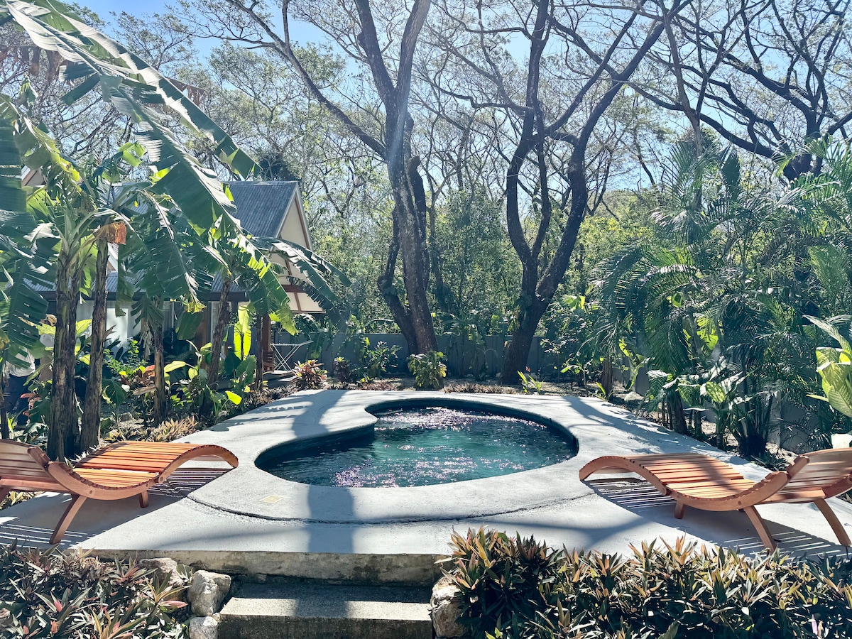 Այս առասպելական տունը տեղակայված է լեռներում ՝ Սամարայի լողափերից ընդամենը 15 րոպե հեռավորության վրա, և դա խաղաղ հանգստի սահմանումն է: Եկեք այստեղ մենակ մնալու և գրելու ձեր նորավեպը, հանգստանալու կամ որակյալ ժամանակ անցկացնելու որպես ընտանիք: Տեղակայված լինելով 20 հեկտար մասնավոր հողատարածքի վրա, որը լի է մրգերի զանազան ծառերով (սուրճ, չիլի պղպեղ, աստղային մրգեր, բույսեր, ծովախեցգետին և այլն), դուք կզգաք Կոստա Ռիկայի բնական գեղեցկությունը ՝ ընկղմված բնության տեսարժան վայրերի և ձայների մեջ: