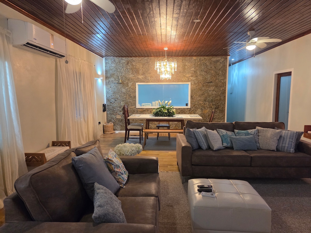 Թեև գեղեցիկ լողավազանով այս ցնցող վիլլան նախատեսված է 10 հոգու համար, նշված գինը 6 հոգու համար է։ Յուրաքանչյուր լրացուցիչ հյուր մեկ գիշերվա գինը 25 $ է ։ Եթե ձեր ընտանիքը ավելի մեծ է, ազատորեն հարցրեք մեկ գիշերվա համար լրացուցիչ 100 ԱՄՆ դոլարով հարակից մեկ սենյականոց շալե ամրագրելու մասին։ Մինչ ննջասենյակները օդորակված են, Վիլլայի հիմնական բնակելի տարածքները ՝ կենդանի/ճաշասենյակ, շքամուտք և խոհանոց, սառեցվում են առաստաղի օդափոխիչներով և բաց պատուհաններից և դռներից ներս մտնող կղզու քամիներով ։