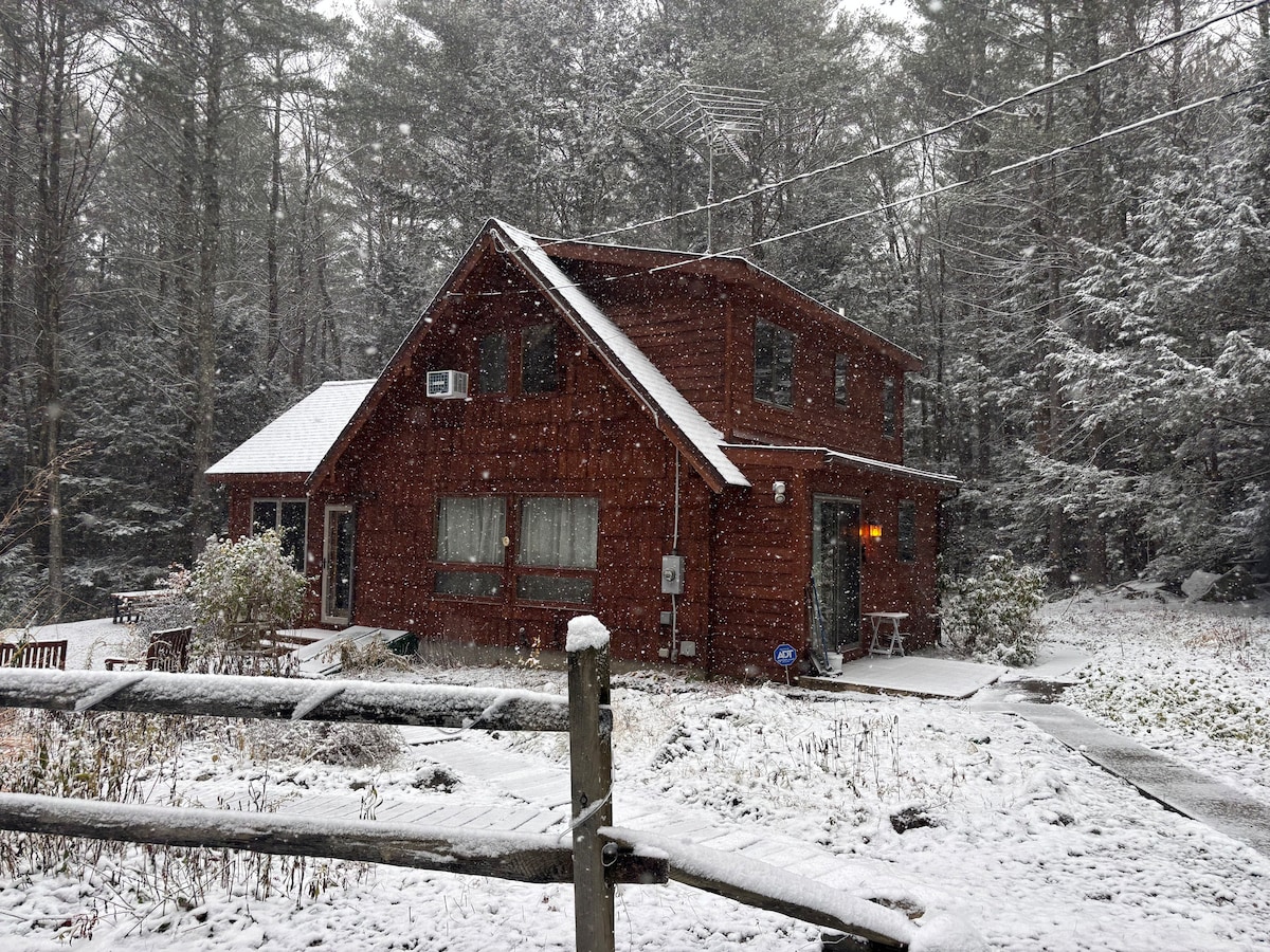Serene rustic cabin in Colebrook, Ct in beautiful Litchfield County! Cozy King bed under skylight, queen downstairs, woodstove and all the comforts of home. Pure clean pond- swim, fish, canoe n kayak! Sits far from main roads on quiet back road. Can walk, run or bike to local trails or stay and walk the trail around the pond, have campfires outside in firepit! Cleaned by me, no crazy rules n and surrounded by nature! Private Great WIFI! Close to quaint ski resorts n dispensaries