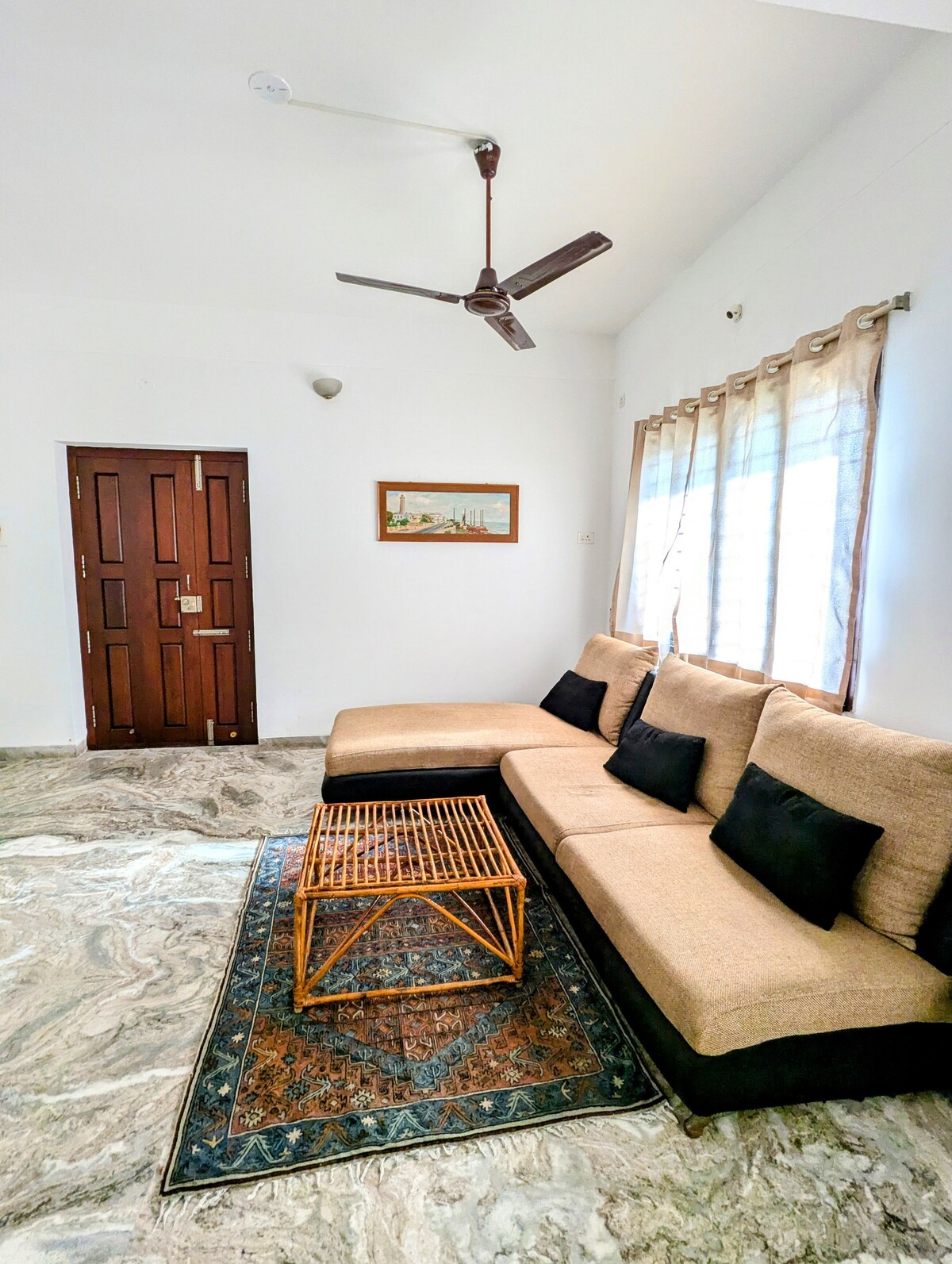 This 1 Bedroom Apartment at GF with a hall, functional kitchen, and attached bathroom is a fully private space with No sharing of any area. It is at walking distance from Promenade beach, Rock Beach, Ashram, White Town, market & good cafes. The Place is near the White Town and still close to nature and very peaceful surroundings. All the windows are facing huge green Ground. It has fully functional kitchen with utensils, Freeze, AC, Geyser, TV, High speed wi-fi. We need id proofs of all guests.