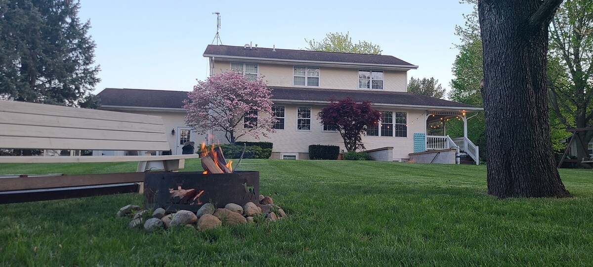 Մնացեք 2 - րդ պատմությամբ մասնավոր առանձնատանը ՝ ժամանակակից ագարակում, որտեղ բնակվում ենք Ամիշական երկրի ընտանեկան ագարակում ։ Հյուրերն ունեն ամբողջ 2 - րդ հարկը ՝ 2 ննջասենյակ, առանձին լոգարան և նիստերի դահլիճ ։ Դուք կարող եք դիտել Amish buggies քշել է, իսկ դուք ռոք վրա առջեւի պատշգամբում, մուտք գործել ընդհանուր պատիո տարածքներ կամ նստել է առու. Մենք ունենք կովեր, այծեր և հավեր: Մենք գտնվում ենք Shipshewana Amish/Mennonite համայնքի սրտում ՝ քաղաքի կենտրոնից րոպեներ հեռավորության վրա ։ Իսկական, հարմարավետ երկիր ։