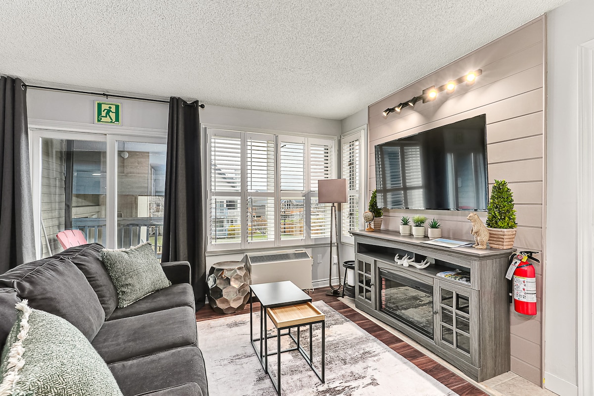 Come and relax by the mountain and enjoy our renovated open concept living space. Our clean & comfortable studio condo has everything you need for a memorable getaway. We want you to have a fantastic time and have stocked our condo with all the things we expect when we travel. You'll find all the extras that make a place special: 40 inch flat screen T.V., fresh linens, well stocked kitchen, newer furnishings & decor, napoleon fireplace, deep jetted tub & free WiFi, NETFLIX and cable.