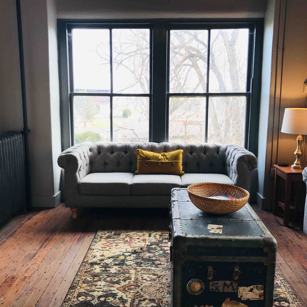 Originally built in 1895, Granny's farmhouse is a Queen Anne Victorian with stained glass windows, period architecture, push button light switches, and is furnished with antiques. Beautifully restored and decorated, Granny's farmhouse also features ten foot ceilings, an updated modern kitchen, skylights, fireplace, and is located on a working farm with beautiful vistas and 360 degree mountain views.