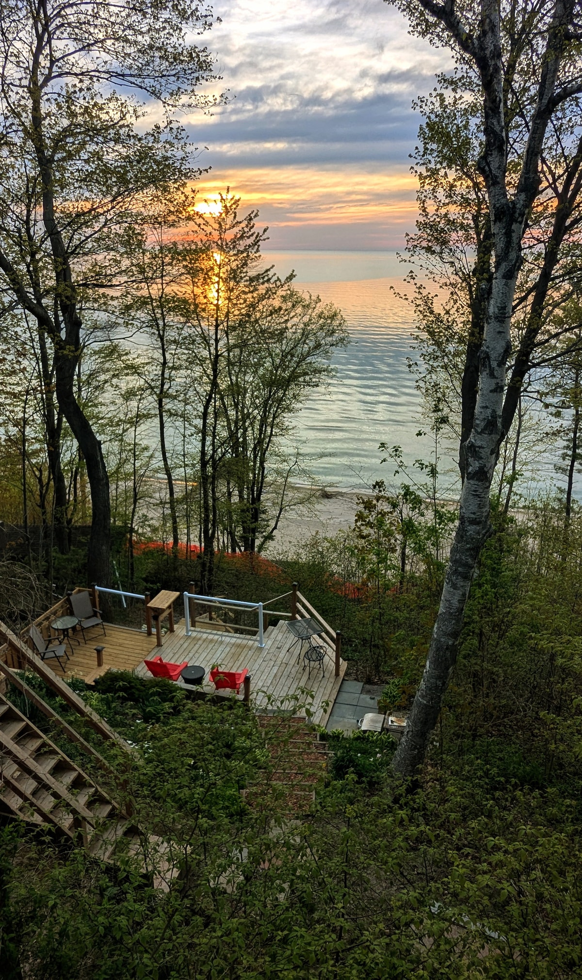 Գտեք Bluecoast Bunkie - ին, որը տեղադրված է Հուրոն լճին նայող ժայռի վրա գտնվող ծառերի մեջ ։ Քնեք ափերին թափվող ալիքների ձայնի ներքո և արթնացեք թռչունների երգչախմբին ՝ միաժամանակ վայելելով մի բաժակ արհեստավոր սուրճ կամ թեյ ձեր առանձին տախտակամածի վրա: Զբոսնեք ափամերձ գոտու երկար հատվածներով, որոնք հազվադեպ են այցելում ուրիշները ։ Հանգստացեք առանձին լողափում կամ փակ աղի ջրով լողավազանի կողքին ։ Ավարտեք օրը ՝ միաժամանակ տեսնելով այս աշխարհի ամենահիասքանչ մայրամուտները ։