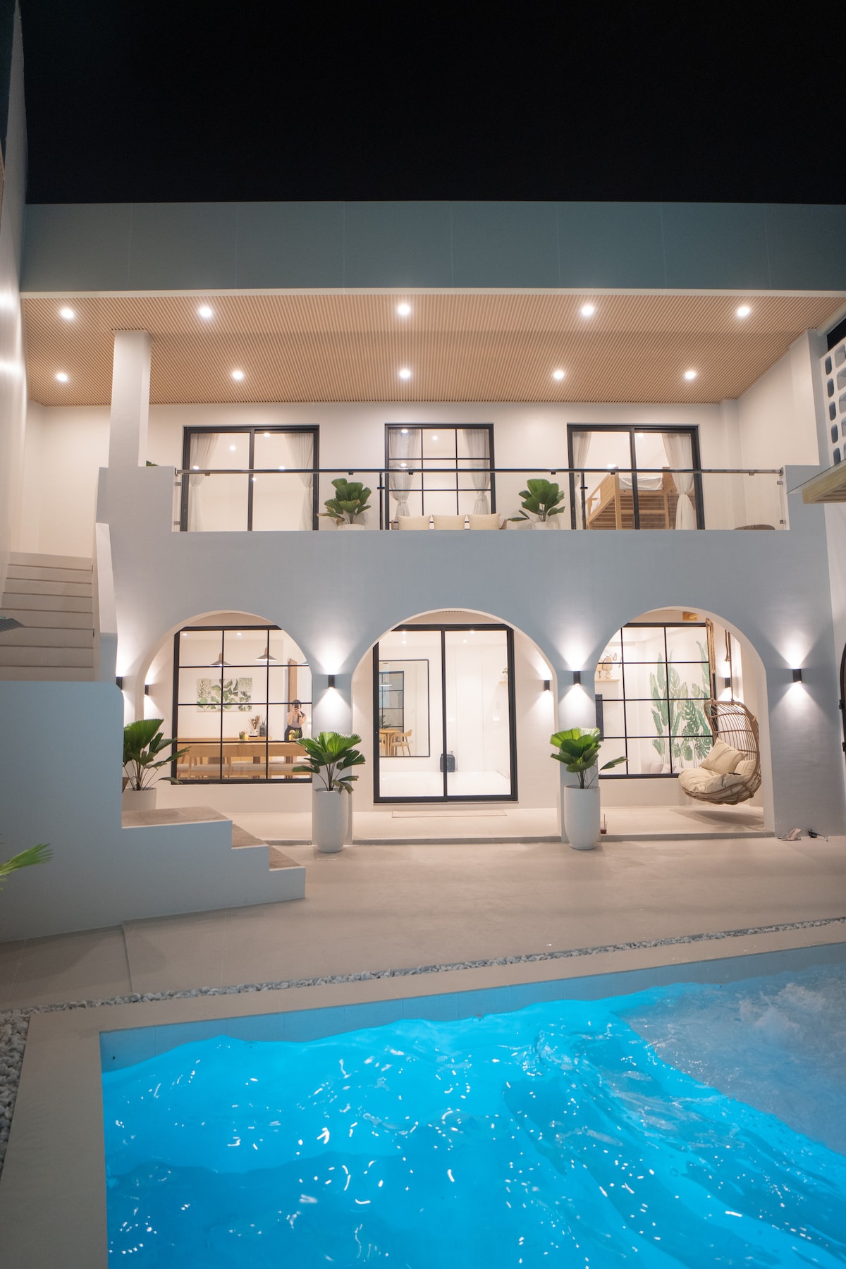 Առանձին ապակե տան վիլլա ՝ լողավազանով, հարմար է 20 Pax - ի համար