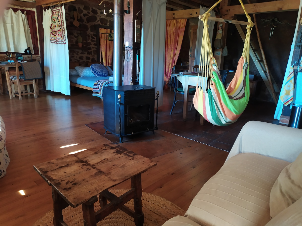 Vivienda de uso turístico (N°licencia: 42/000223) La cabaña de piedra es una acogedora casita de piedra y madera en la que conectas contigo mismo y la naturaleza que te rodea. Es una casa muy especial, hecha casi a mano con gran esfuerzo y mucho cariño. Pero NO ES UN HOTEL, es una casa particular con sus características y condiciones, que no siempre coinciden con las de un hotel!!. Asegúrate de que cumple con tus espectativas.