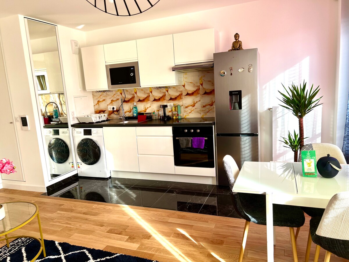 Փարիզից տրանսպորտով 20 րոպե հեռավորության վրա գտնվող այս ժամանակակից 2 սենյակը իդեալական է մայրաքաղաքը ուսումնասիրելու համար՝ միևնույն ժամանակ մնալով հանգիստ և հաճելի տարածքում։ Բնակարանում կարող է տեղավորվել մինչև 4 անձ, և այն առաջարկում է ձեզ անհրաժեշտ բոլոր հարմարությունները՝ կահավորված բաց խոհանոց, հյուրասենյակ՝ 55 դյույմանոց Smart TV-ով, հարմարավետ ննջասենյակ, օպտիկական մանրաթելային կապ, օդորակիչ և պարտեզի տեսարաններ։ Մոտակա տրանսպորտային միջոցներ (մետրո, ավտոբուս, գնացք)։ Կատարյալ սկզբնակետ Փարիզ այցելելու համար ։