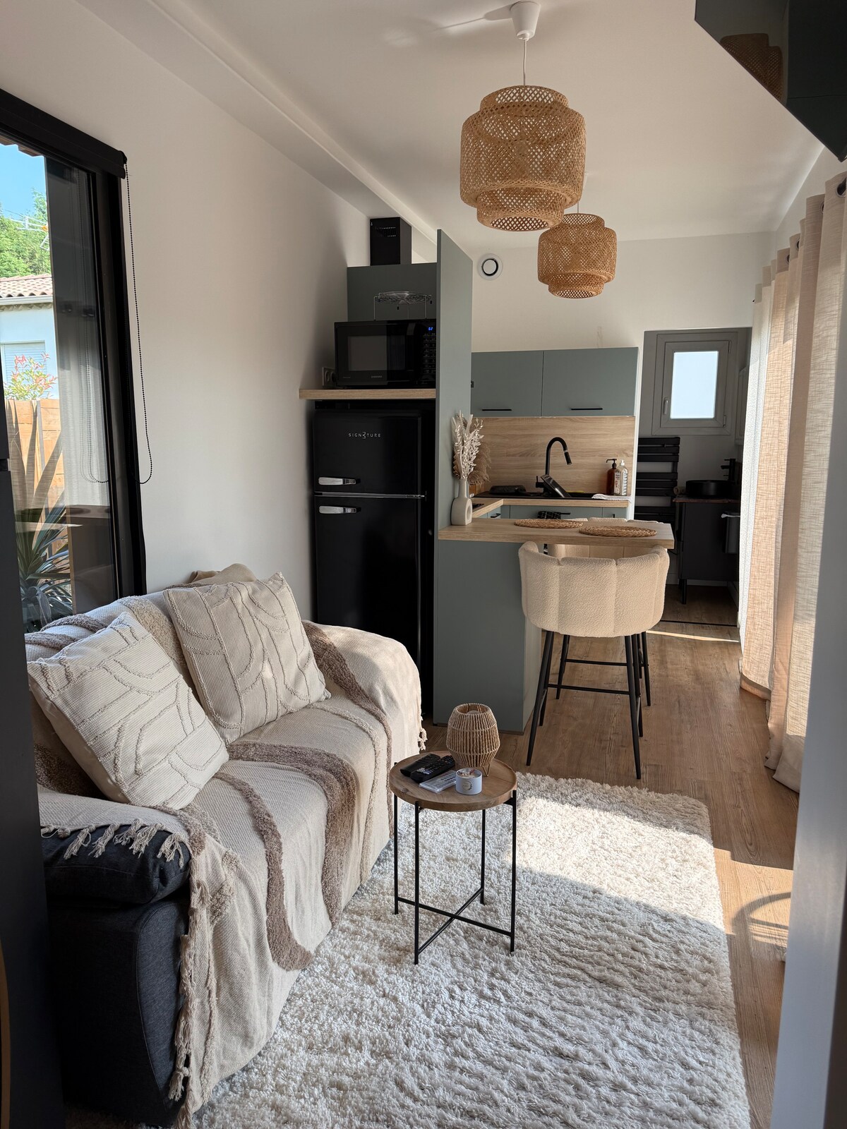 Այս անկախ, խաղաղ կացարանն իր կտուրով, պերգոլայով և մասնավոր այգով հանգստի հնարավորություն է տալիս գեղեցիկ լողավազանում արևի, հանգստի և լողալու կարիք ունեցող զույգին կամ փոքր ընտանիքին, որը բաց է մայիսի սկզբից մինչև սեպտեմբերի վերջը ։ Կացարանը շատ լավ կահավորված է..., զտիչով սրճեփ, թեյնիկ, ջեռոց, միկրոալիքային վառարան, գազօջախ, լվացքի մեքենա, հեռուստացույց, գերարագ ինտերնետ, օդորակիչ, որակյալ անկողնային պարագաներ, սավաններ և սրբիչներ և թեյի սրբիչներ: