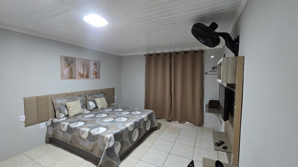 Estúdio moderno, prático e confortável , totalmente mobiliado e localizado no centro. Ideal para quem busca comodidade e fácil acesso a tudo: restaurantes, academias, cafés, lojas, farmácias e mercados. O espaço conta com cama confortável com enxoval de qualidade, ar-condicionado quente e frio, Wi-Fi de alta velocidade, cozinha compacta equipada com utensílios essenciais, banheiro privativo moderno e funcional. Perfeito para viagens a trabalho ou lazer, com localização privilegiada.