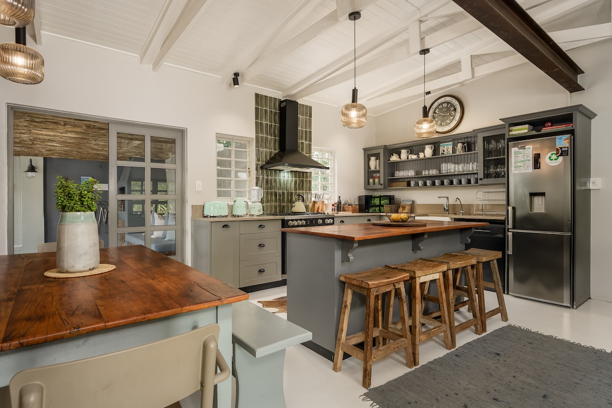 This elegantly styled two bedroom cottage provides you 5 star comfort, unique location and stunning ocean view. Newly renovated interior with stylish furnishings and fittings, you will fall in love with the cosy feeling and tranquil environment. Walk down to the beach, breath in the ocean mist and leave only footprints behind ….. Equipped with inverter system to power lights, TV, Wifi, alarm and water pump. Gas hob so load shedding unaffected ..