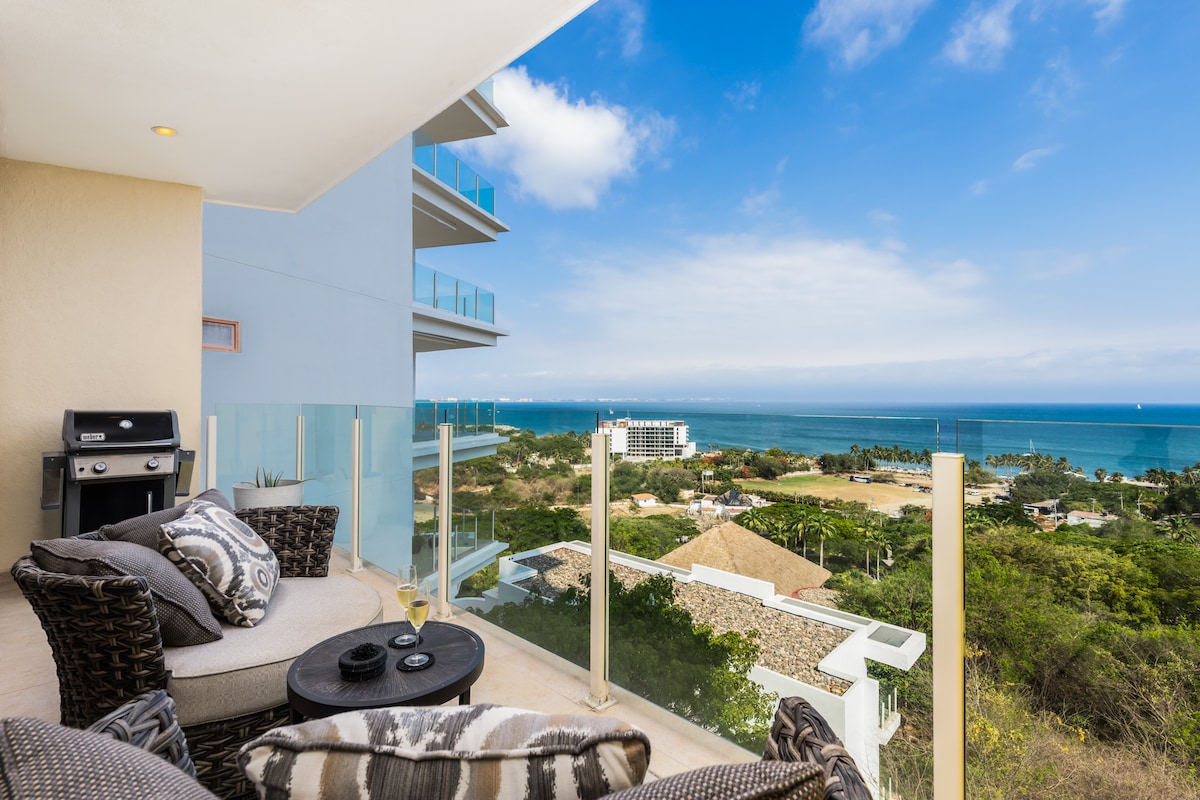 Romantic spacious one bedroom apartment with panoramic ocean views and a private heated pool in the tranquil north end of Sayulita *High speed wifi via Sayulitawifi * Smart TV *Air conditioning and ceiling fans *Kitchen with stove, oven, microwave, blender, coffeemaker and all utensils *Breathtaking panoramic views of the entire bay *King bed, pillowtop mattress *Parking for 1 vehicle *Interior soaking tub and exterior private heated pool *Spacious common area pool and grill *Gym and Yoga