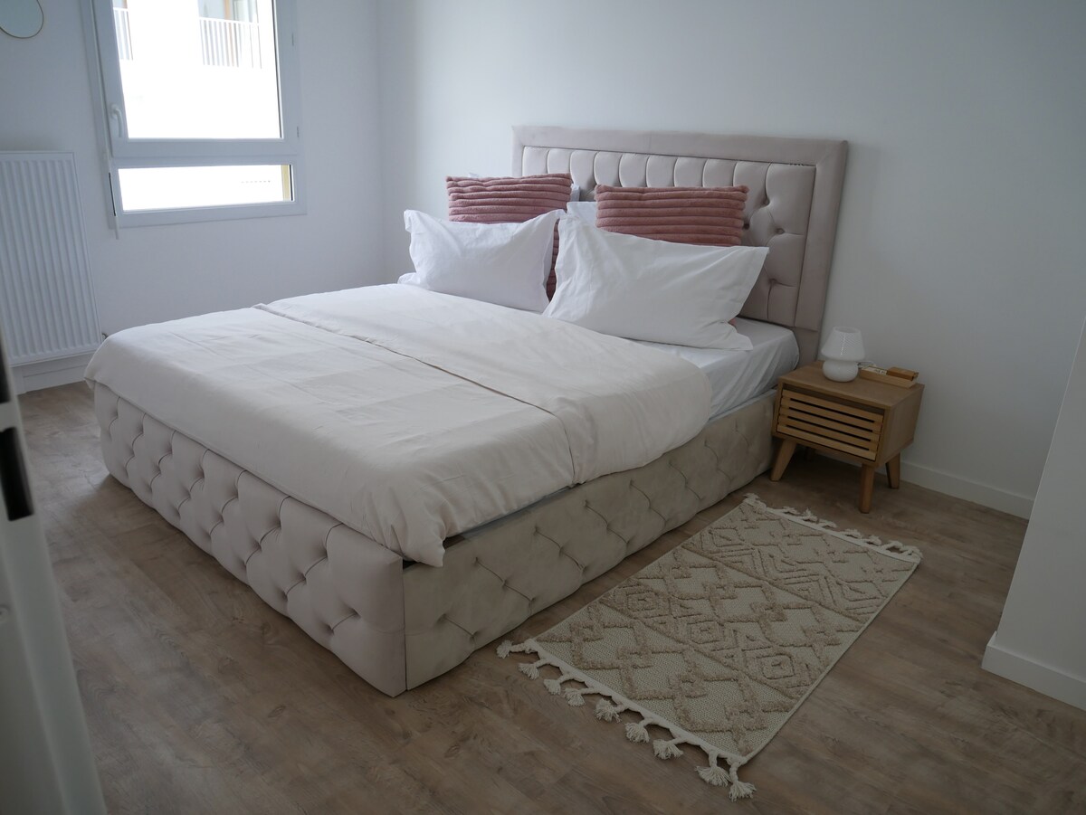 Հանգստացեք այս հանգիստ և ոճային տարածքում ։ Հարմարավետ մթնոլորտ հանգստի և հանգստի, հանգստության և հանգստության համար: Դուք կլինեք ձեր կոկոնում ՝ մնալով բոլոր հարմարություններին մոտ ( ռեստորան, արագ սնունդ, սուպերմարկետներ և շուկա և տրանսպորտ 5 րոպե հեռավորության վրա..), որը կատարյալ է հանգստանալու համար ՝ մնալով կապի մեջ մնալով: -25 րոպե Ռոիսի Շառլ դը Գոլի օդանավակայանից - 20 րոպե Parc des Expositions de Villepinte - ից