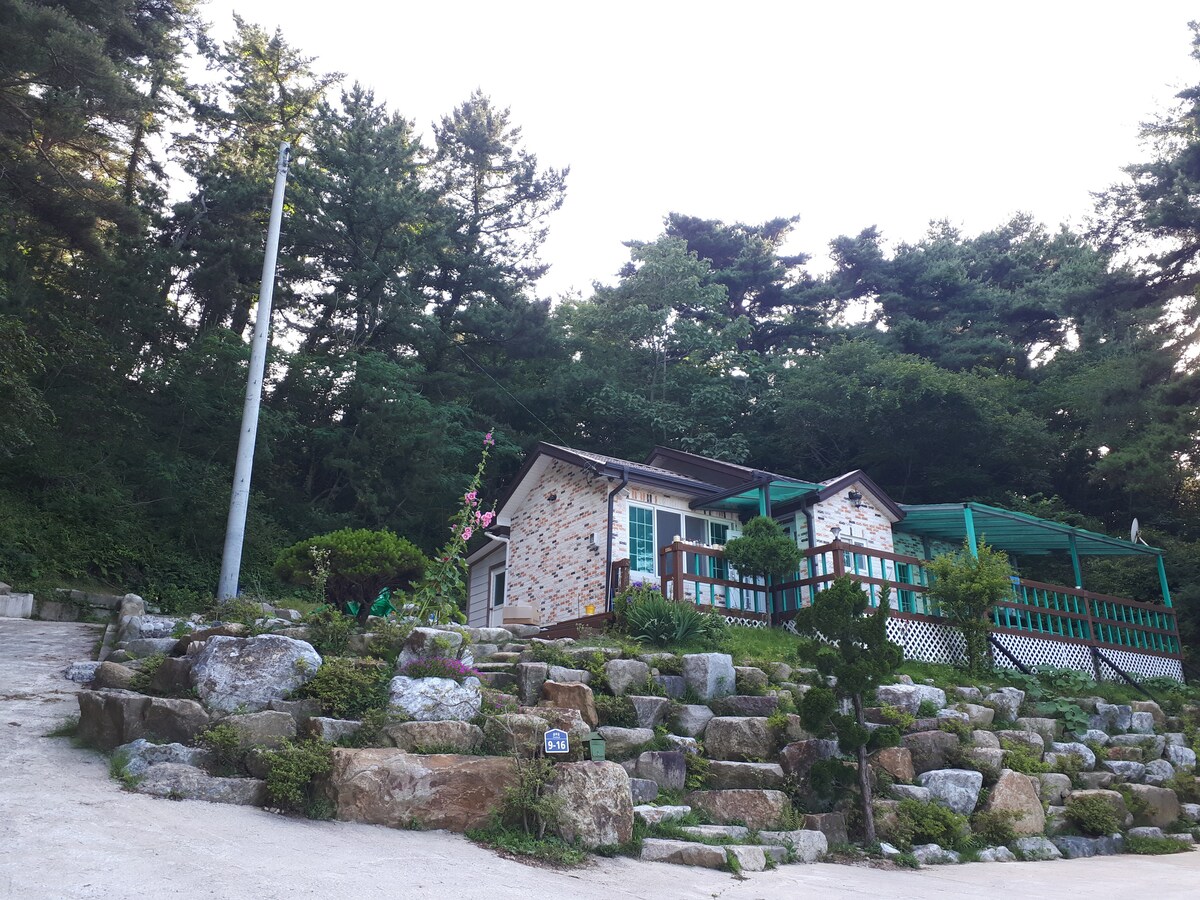 Մի 1.2 հարկանի դուպլեքս կառույց (լիարժեք օգտագործման) պանսիոնատ ՝ գեղեցիկ Չոնգպունգ լճով և Geumsusan - ով, 8 հոգուց մինչև առավելագույնը 12 մարդ:Հարմարավետ կացարան է հաճելի հանգստի համար ՝ վայելելով բարեհամբույր գյուղական վայրեր ՝ ծանոթների հետ ։ Ճոպանուղու համայնապատկերից 5 րոպե հեռավորության վրա կա մոնորեյլ աշտարակ, որտեղ կարելի է համեղ կերակուր ուտել ։