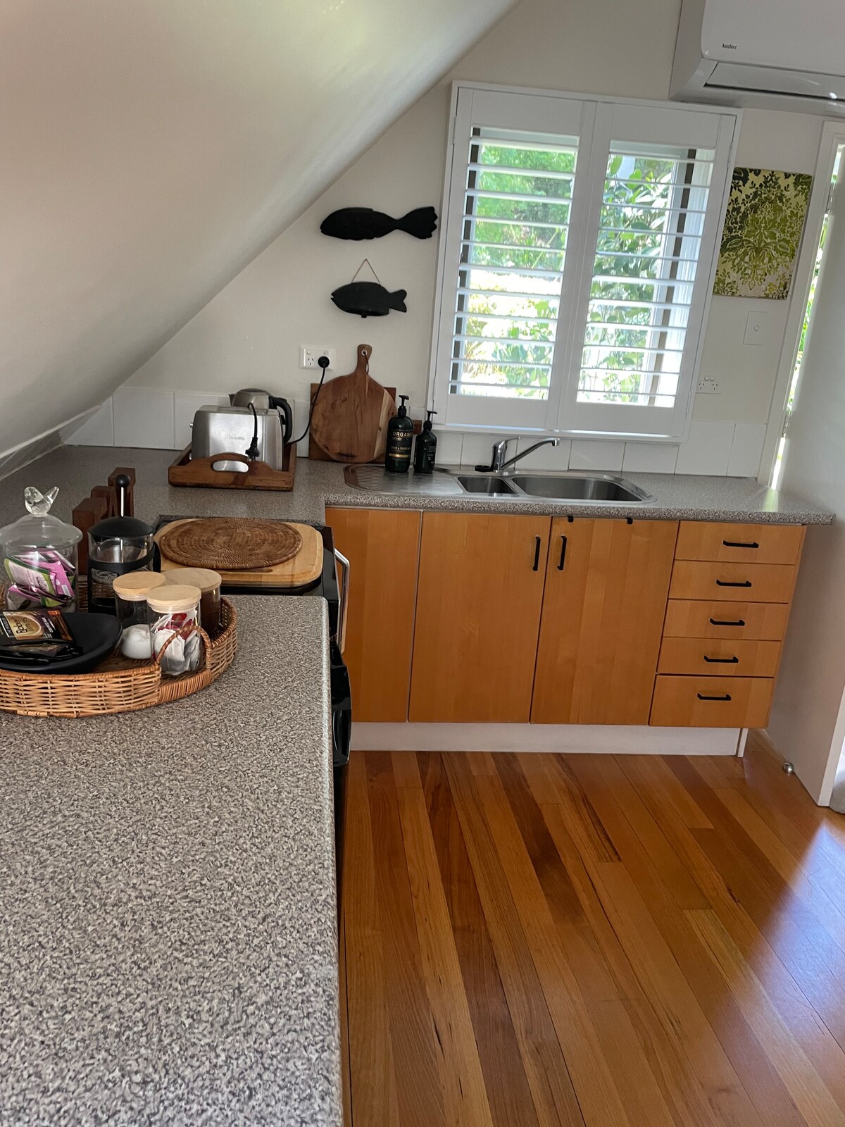 Wine, dine & shine in the beating heart of Ettalong! Your options endless...play on the beach, shop at the Galleria, grab lunch at Coast 175, book dinner at Safran, Osteria, Chica Chica or La Fiamma & more. Mix & mingle at Bar Toto (you could literally crawl home ;) You're in for a sublime sleep on our ultra comfy bed in our petite guest suite. Hit up Lord's of Pour, Maxima or Coast for morning coffee and be sure to treat yourself to scrumptious baked goods @ RISE. Life is good!