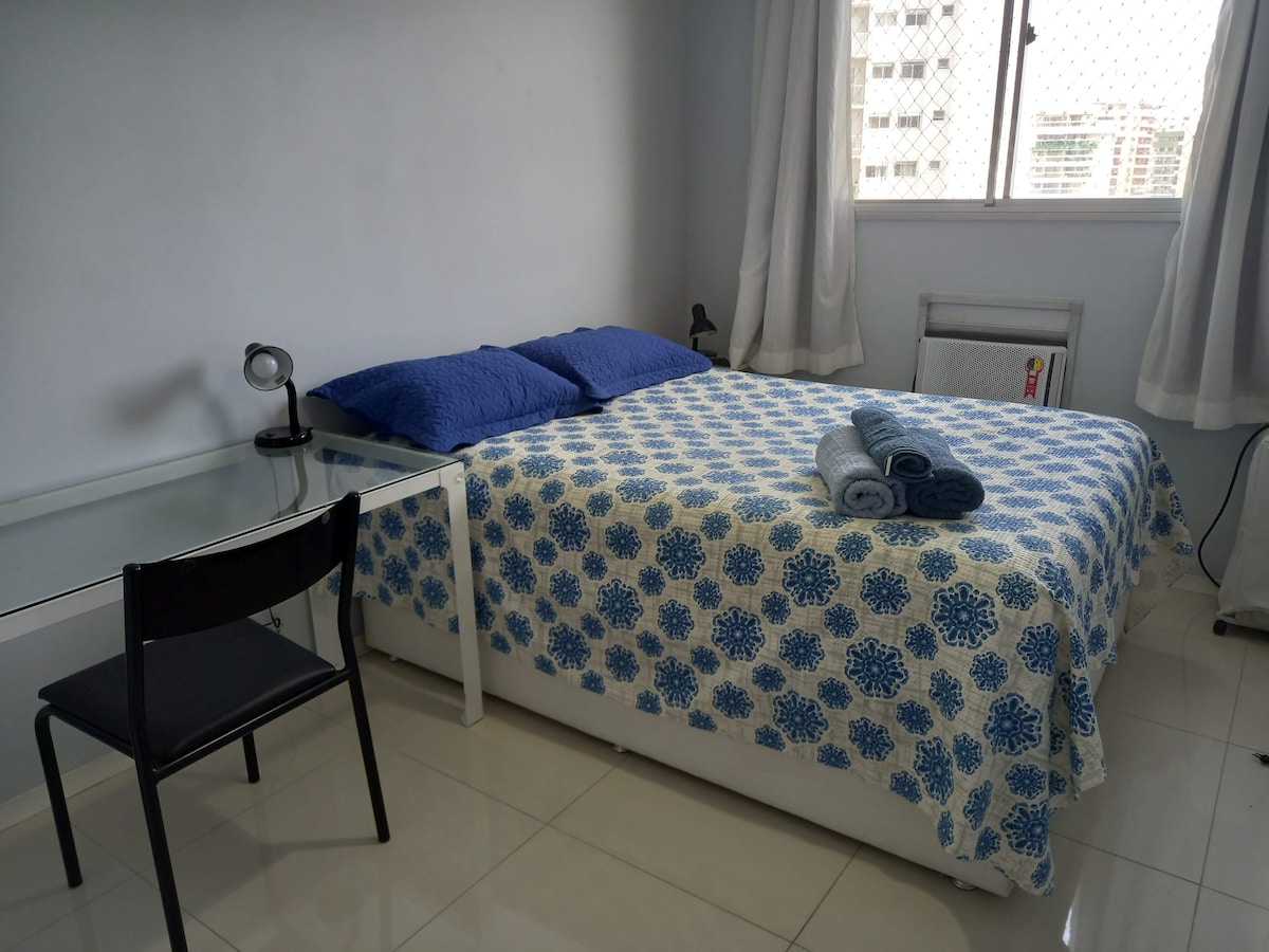Enjoy a stunning and unique view of both the ocean and the mountain in a centrally located 2 bedroom renovated apartment in Leme, Copacabana ideal for families and couples. The apartment is cozy and has everything you need to make you feel at home. A very spacious and stylishly decorated living room, and a fully equipped apartment. One bedroom has a queen bed, the second bedroom has 2 single beds, and there are 2 more mattress/futons that can be placed in the living room if needed.