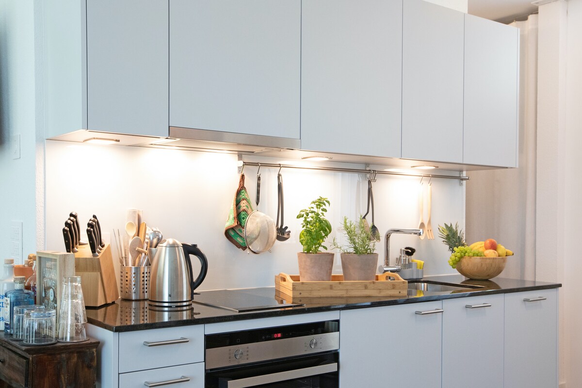 Ժամանակակից կահավորված բնակարան Տոնավաճառի, Հռենոսի, Նովարտիսի, օդանավակայանի հարևանությամբ: 24 ժամ ինքնուրույն ժամանում: Անվճար հասարակական տրանսպորտ Բազելում: Տրամվայի կանգառ անմիջապես տան դիմաց > կենտրոնական կայարանից 14րոպե հեռավորության վրա SBB տրամվայով, օդանավակայանից 8 րոպե հեռավորության վրա ՝ տաքսիով: 54 քմ բնակարան Kingsize - Bed - ով (1.80m x 2.00m), ավտոմատ սրճեփ, խոհանոց, տոստեր, ջրատաքացուցիչ, վարսահարդարիչ, արդուկ, 43"Smart - TV +Netflix, Fondue pot, raclette, highspeed - Wi - Fi, գրասեղան + 32" էկրան և անջատիչ, Bluetooth բարձրախոս, մեծ բազմոց: