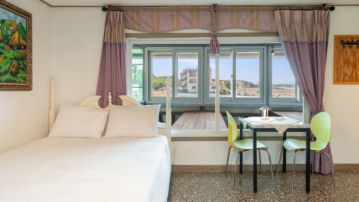 Մեր պանսիոնատն ունի մեծ հարթ ջրով և մեկ թիմով հանգիստ և հարմարավետ հանգստանալու հնարավորություն ։ Այն գտնվում է Ջեջուի կենտրոնին և զբոսաշրջային վայրերին շատ մոտ: Որպես երկհարկանի առանձնացված տուն ՝ առաջին հարկը կացարան է, որտեղ կարող եմ ապրել և օգտագործել 35 պյեոնգի ամբողջ երկրորդ հարկը ։ Կացարանի մուտքն առանձնացված է աջ կողմի առաջին հարկից ։ Մոտակայքում շատ ռեստորաններ կան, ուստի այն հարմար է առաքման կամ ոտքով սնվելու համար: Նաև կարող եք պարզ կերակուրներ պատրաստել և ուտել կացարանում ։ Դուք չեք կարող միս խորովել կացարանում, և այն կարող եք խորովել շքամուտքի դիմաց գտնվող պատշգամբում ։ Մենք խորոված չենք անում ։ Այս պանսիոնատը հարմար է նրանց համար, ովքեր Բաեկյեի մայրաքաղաքում ընտանիքի ընկերների և ծանոթների հետ երջանիկ և հանգստանալու կարիք ունեն ։ Չեմ կարծում, որ դա հարմար է շատ ուսանողների համար ՝ խմելու և խաղալու համար: Եթե ունեք փոքր մեքենա, կարող եք կայանել 2 մեքենա, եթե չունեք 3 փոքր մեքենա ։ Մնացած տրանսպորտային միջոցները պետք է կայանված լինեն շրջակա ճանապարհներին, և ճեղքվածքներ չկան ։ Երբ գաք, կարող եք առանձին պանսիոնատ որոնել նավիգատորում ։ Հասցեն ՝ 6, Heukcheon - ro 12beon - gil, Jeju - eup ։