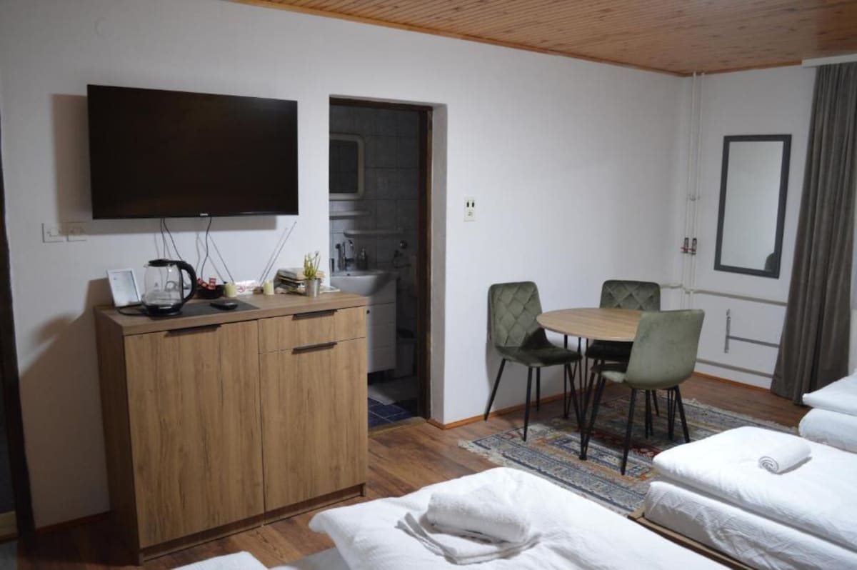 Բացահայտեք Սարաևոն մեր կենտրոնական բնակարանից: Բարի գալուստ ձեր տուն ՝ տնից հեռու ։ Մեր ժամանակակից բնակարանը գտնվում է աշխույժ բազարից ընդամենը մի քանի քայլ հեռավորության վրա, որը իդեալական է քաղաքի հարուստ մշակույթն ու խոհանոցն ուսումնասիրելու համար: Ինչո ՞ ւ ընտրել մեզ Գտնվելու վայրը ՝ տեսարժան վայրերի և սրճարանների մոտակայքում վայելեք Սարաևոն ձեր ձեռքի տակ ։ Հարմարավետություն և ոճ. լիովին հագեցած է հանգստի համար նախատեսված ժամանակակից հարմարություններով ։ Տեղական գաղափարներ. ստացեք խորհուրդներ ՝ գտնելու գողտրիկ անկյուններ և իսկական Սարաևո ։ Ամրագրեք հիմա ՝ անմոռանալի հանգստի համար