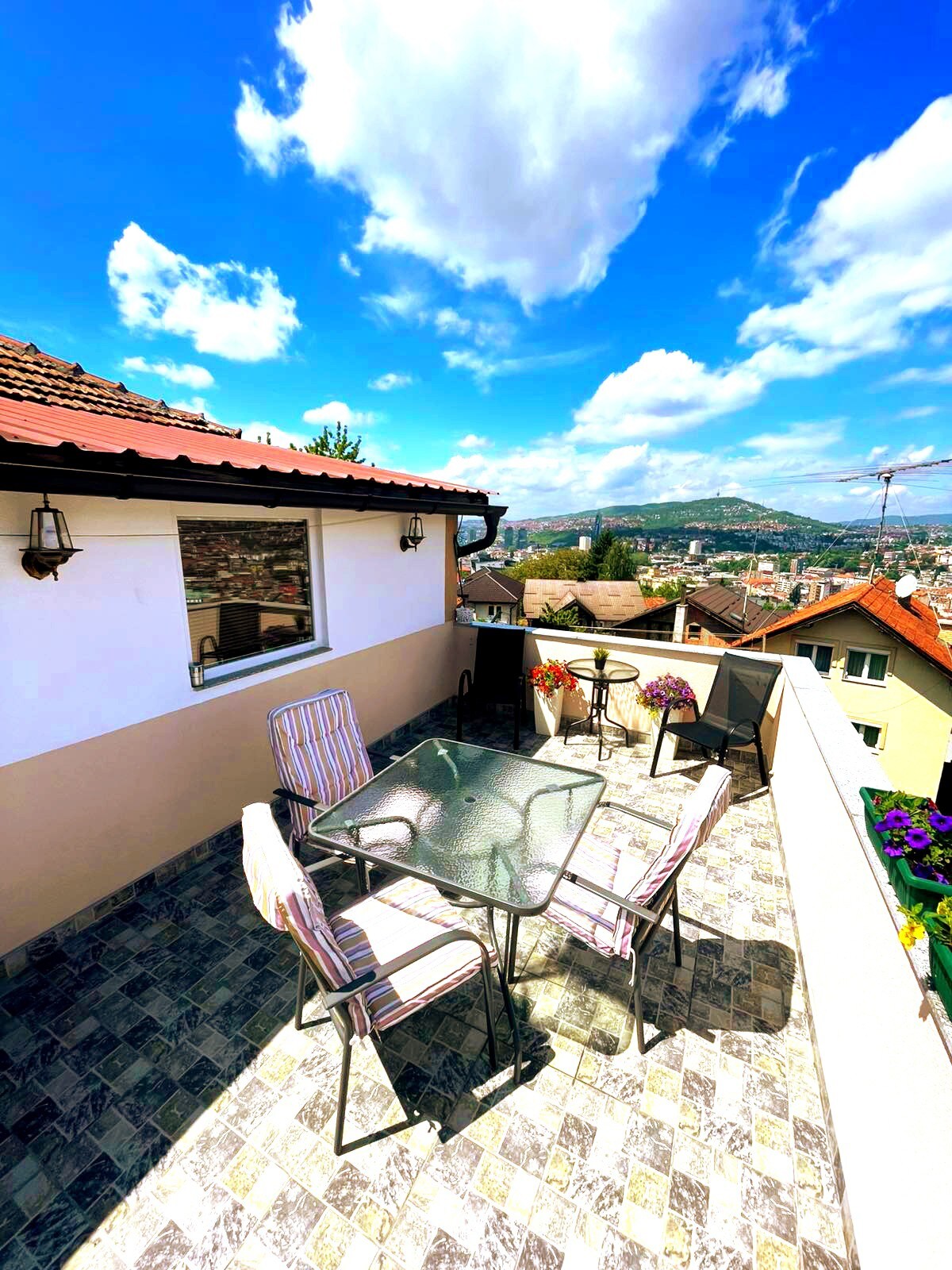 Այս յուրահատուկ և ընդարձակ, 90 քառակուսի մետր մակերեսով պենթհաուս - բնակարանը գտնվում է կենտրոնում ՝ Սարաևոյի սրտում գտնվող ամենապահանջված թաղամասերի, անվտանգ, խաղաղ և 10 րոպե/800 մ հեռավորության վրա: Այն ունի 2 ննջասենյակ, մեծ լոգասենյակ, զուգարան, ժամանակակից մեծ խոհանոց ՝ բոլոր անհրաժեշտ հարմարություններով ՝ ձեր հանգիստը հարմարավետ և հաճելի դարձնելու համար: Նոր վերանորոգված, շքեղ և գեղեցիկ տեսարան դեպի քաղաք: Ձեր այցի ընթացքում տարածքում կարող եք օգտվել անվճար WiFi, հեռուստացույց, օդորակիչ, սրճեփ մեքենա և անվճար կայանատեղի