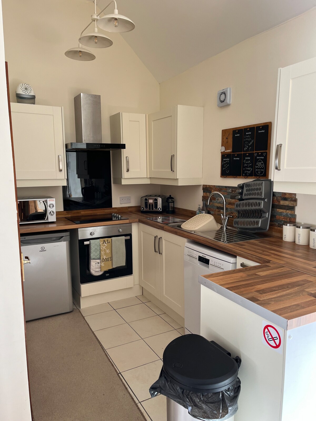 A quiet, end-terrace cottage in Huntly, off the main streets but in easy walking distance to the train station and town centre. The cosy living room is fitted with an efficient log burning stove, and you will find a basket of wood on your arrival. The kitchen is located at the back of the building with access to a small, enclosed garden perfect for a slow breakfast in the sun or an evening drink on the lawn. The bathroom is accessible via a stairways upstairs. We look forward to hosting you!