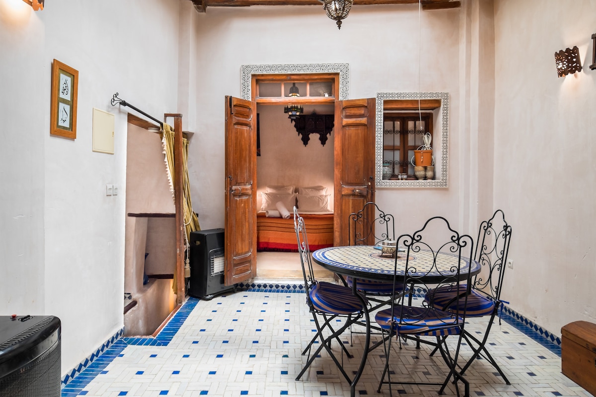 Welcome to Dar El-Kendil, a charming 1920s riad nestled in the heart of Fès’ historic medina! 🎨✨ You’ll have the entire house to yourself. Enjoy traditional Moroccan charm combined with modern comforts: cozy furniture, cheerful décor, air conditioning/heating, fast Wi-Fi, and a fully equipped kitchen. Just a 10-minute walk will take you to Fès’ most iconic sites: Bab Boujloud (the Blue Gate), Al-Qarawiyyin Mosque, Funduq al-Najjarin, & the historic market, perfect for fresh local ingredients.