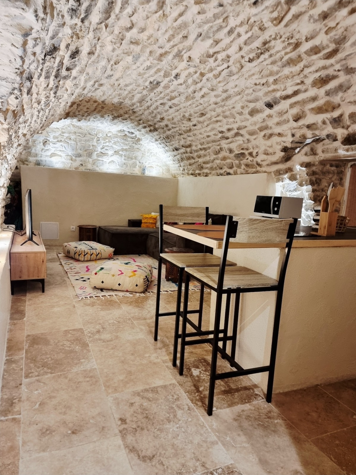 Cadre idyllique pour ce charmant loft de 53m2 indépendant dans notre mas. Prestations soignées dans une ancienne magnanerie intégralement restaurée alliant confort moderne et caractère traditionnel. Le gîte est entièrement équipé (WC, baignoire, cuisine, chauffage par poêle à bois Etc… ) Rivière sauvage, grand espace de verdure et forêts aux alentours, cuisine extérieure et terrasse privative vous accueilleront également pour passer de beaux moments de déconnexion. À seulement 20 min des Vans.