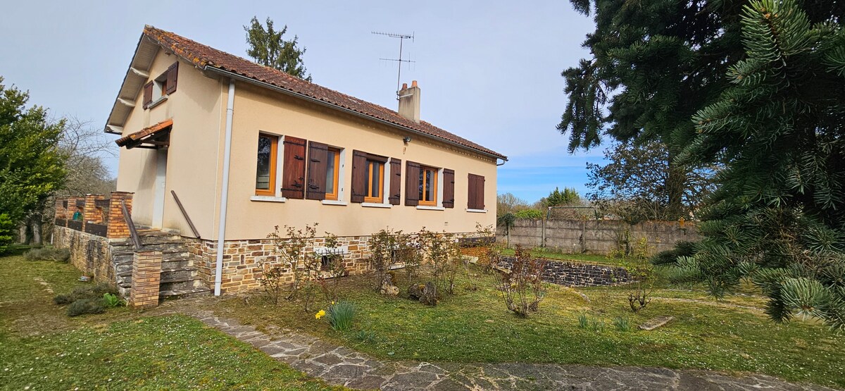Maison agréable au coeur d'un grand jardin de 3200 m2, à 30 kms du futuroscope , 36 kms de la vallée des singes , 10 mn de Chauvigny cité médiévale et son spectacle des aigles , 10 mn du centre multi activités Abysséa et sa planète des crocodiles , 10 mn du Parc DéfiPlanet ...... 3 chambres , 2 au rez de chaussée , 1 à l'étage ...1 salle de bain , 1 WC ....salle à manger et salon ! 1 cuisine