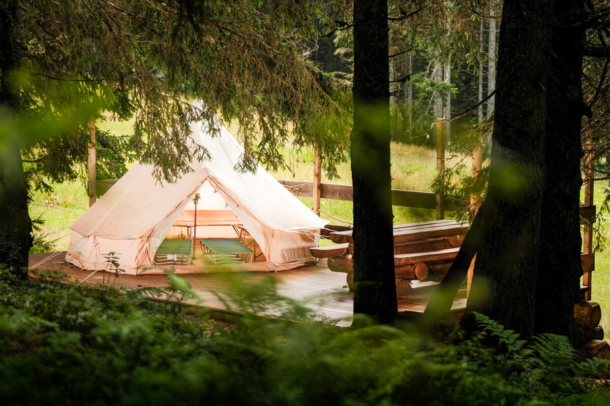 Սկաուտական վրան, որը գտնվում է ագարակային մինի - ճամբարում ։ Գտնվում է Յուրայի և նրա լճերի սահմանին ՝ «Բրեսանե» կանաչուղուն շատ մոտ ։ Բնակելի տարածք կա նաև գազօջախով, էլեկտրաէներգիայով, սառնարանով... Rque: Մինի - քեմփինգը բաղկացած է ՝ 2 «սկաուտական» վրաններից ՝ 2 նստատեղով, 1 «Bivouac» վրանից ՝ 2 նստատեղով և «Տրապեուր », մեկուսացված վրանից Օատում, մինչև 7 նստատեղ, ինչպես նաև 4 նստատեղից բաղկացած« կանադական »։