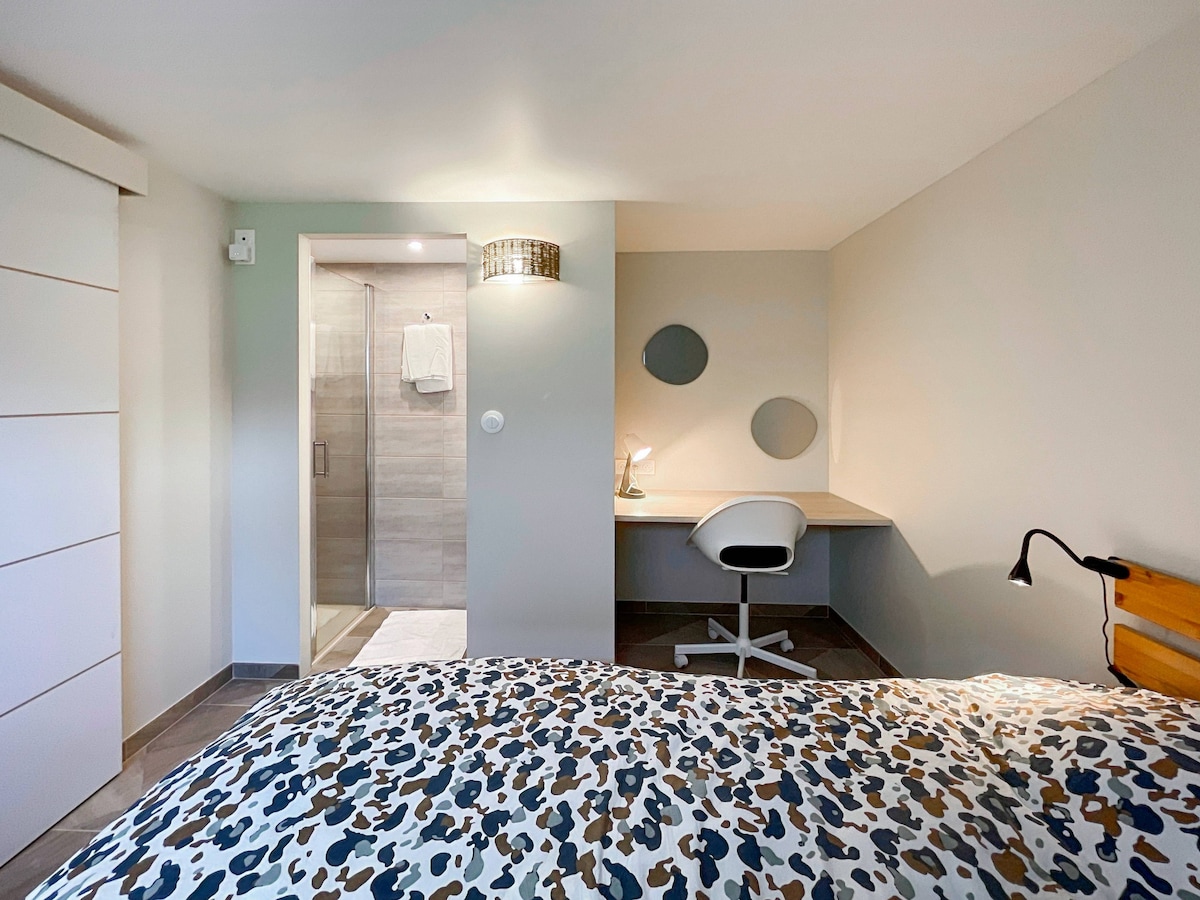 La Vue en Rose-ը հմայիչ ստուդիա է Մեցի պատմական կենտրոնի սրտում, հանգիստ և հարմարավետ, հանգստի համար իդեալական։ Այս 20 մ² խոշոր սենյակը, որը մանրակրկիտ կահավորված է, առաջարկում է հյուրանոցային սենյակի ոգին... բայց ավելի լավը՝ մտերմիկ, ջերմ և անհատականությամբ լի։ 📍 Գտնվում է 3-րդ հարկում առանց վերելակի (ձեռքի աշխատանքը արժե տեսարանը ✨), տաճարից 150 մ հեռավորության վրա։ 🚗 Կուղարկվի ժամանման ուղեցույց, որը կօգնի ձեզ ընտրել ձեր կարիքներին առավել համապատասխանող կայանատեղը (մոտակայքում, անվճար կամ P+R)։