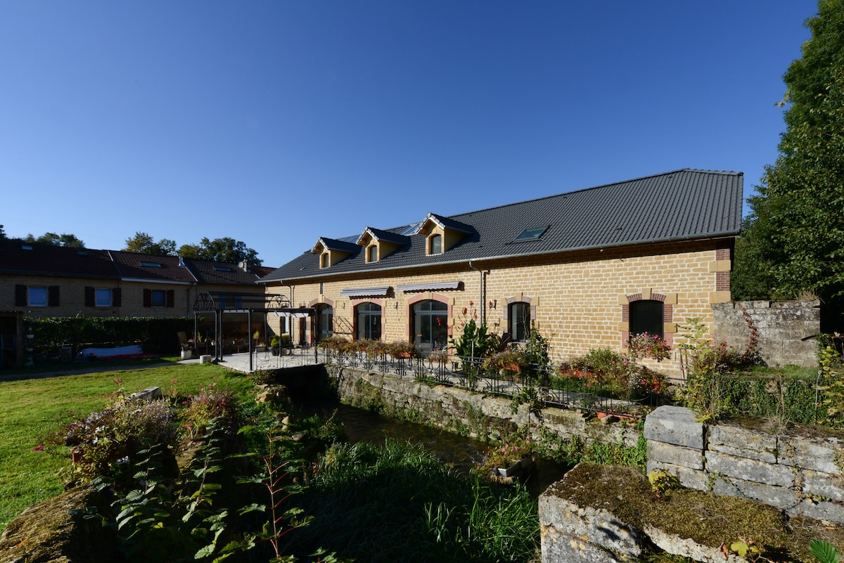 Եթե ուզում եք հանգստանալ, հանգստանալ և առողջ ապրելակերպի ընդմիջում անել, ապա եկեք և բացահայտեք Ardennes Escape - ը!!! Մեր կացարանը գտնվում է Էգլեմոնում՝ փոքրիկ խաղաղ գյուղում, Շառլվիլ-Մեզիեր քաղաքից 6 կմ հեռավորության վրա Կարող եք վայելել ընդարձակ և շատ լավ կահավորված կացարան ։ Դրսում կունենաք ծածկված տեռաս և բացօթյա տեռաս ՝ առանձին 5 տեղանի ջակուզիով ։ Եկեք և վայելեք նրա մերսումների առավելությունները... Եվ մեր նոր սաունայի տարածքը...