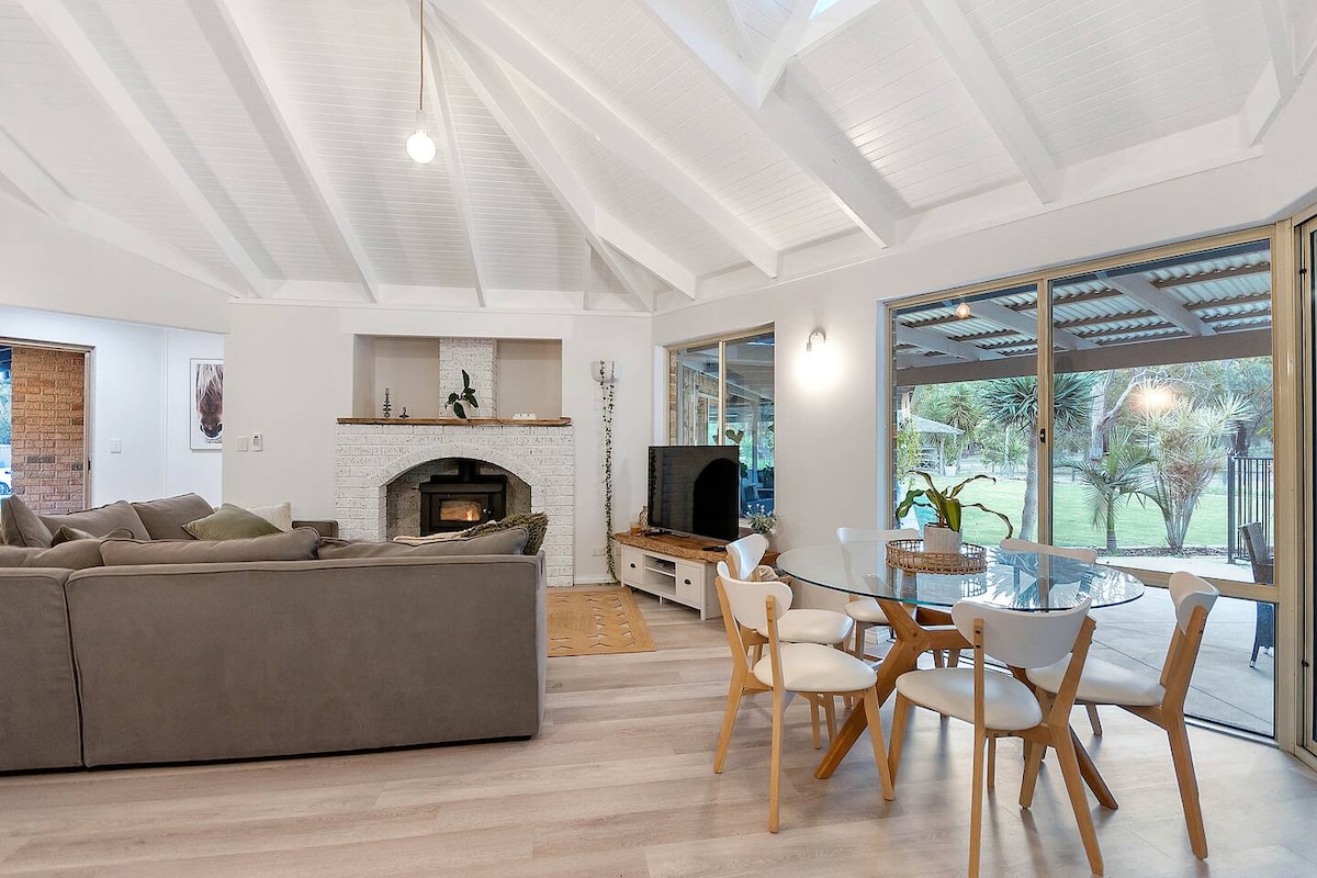 Wifi now available Skylight Retreat is a light and airy, fully equipped 3 bedrooms, 2 bathrooms that can easily accommodate 2 families. The open living area has two wonderful skylights. Ducted air in all rooms will keep you cool in summer and warm/cosy in winter. In the lounge area there is plenty of seating including beanbags, along with two cupboards with jigsaws, games and books. The huge 8 seater dining table definitely caters for all guests and the well appointed kitchen won’t disappoint.