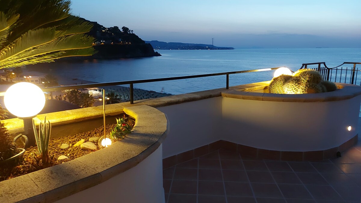 Գեղեցիկ փենթհաուս ՝ տեղակայված Սկիլայի հիմնական հրապարակում, կախարդական վայր, որտեղ կարող եք նախաճաշել կամ ընթրել հիասքանչ համայնապատկերում... յուրահատուկ և հատուկ վայր, որտեղից կարելի է տեսնել Միջերկրական ծովի անսահմանությունը, Սիցիլիայի լույսերը, Սիցիլիայի ծովը, գեղեցիկ լողափը և հնագույն Ռուֆո ամրոցը: Ընդարձակ տուն ՝ երեք ննջասենյակով և երկու լոգասենյակով, խոհանոցով և մեծ տեռասով ։ Հագեցած է օդորակիչով և Wi - Fi - ով: