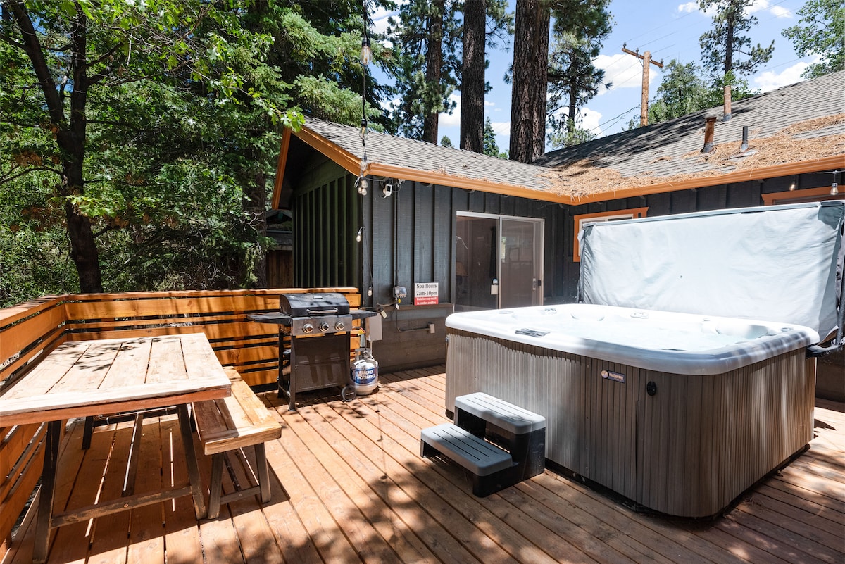 Casa Paloma is nestled in the mountains of Big Bear, just a short walk from the San Bernardino National Forest, Big Bear Mountain Resort, the Golf Course, and the Zoo! The cabin's main attraction is a large deck featuring a 10 person cedar wood hot tub, as well as a seating area and fire pit. This 70's inspired cabin features 4 bedrooms with a vintage flair. Watch the sun set over Big Bear Lake on the upper deck, or cozy up next to the fireplace after a long day of hiking or skiing.