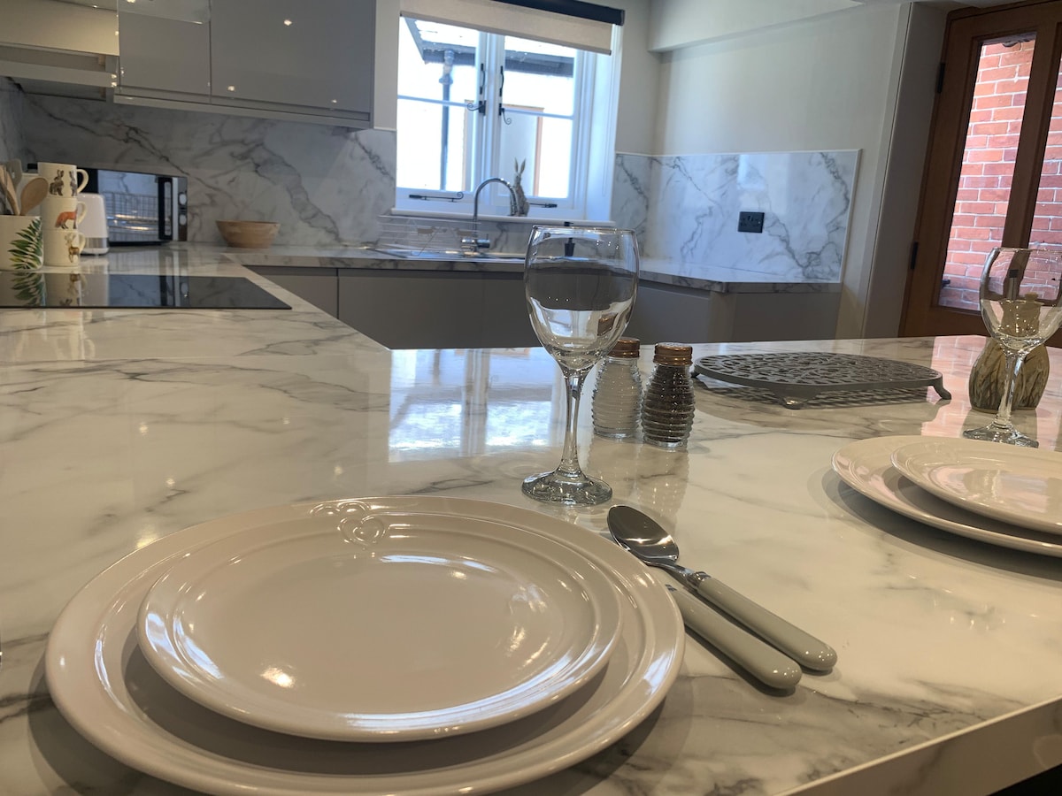 Հազվագյուտ, խաղաղ և ընդարձակ նորակառույց քոթեջ ՝ առանձին այգով, հարմարավետորեն քնում է 6 ժամ: Greensand AONB escarpment - ի վրա, տպավորիչ և անխափան տեսարաններով դեպի Կենտ ծայրամաս: Գյուղական հանգստի 2 մղոն դեպի հարավ Յոթնյակս, կես ժամ գնացքով դեպի Լոնդոնի կամուրջ: Մասնավոր ճանապարհի վրա ։ Սեփական մուտք և կայանատեղի ։ Նոր խոհանոց ՝ թեթև, ընդարձակ ճաշասենյակով և նիստերի դահլիճով ։ WiFi: Շատ առանձին հարավային այգի և պատիո: Ֆանտաստիկ զբոսանքներ դեպի տեղական փաբեր, ազգային վստահություն, հիանալի հեծանվավազք: Թենիսի դաշտի օգտագործում: