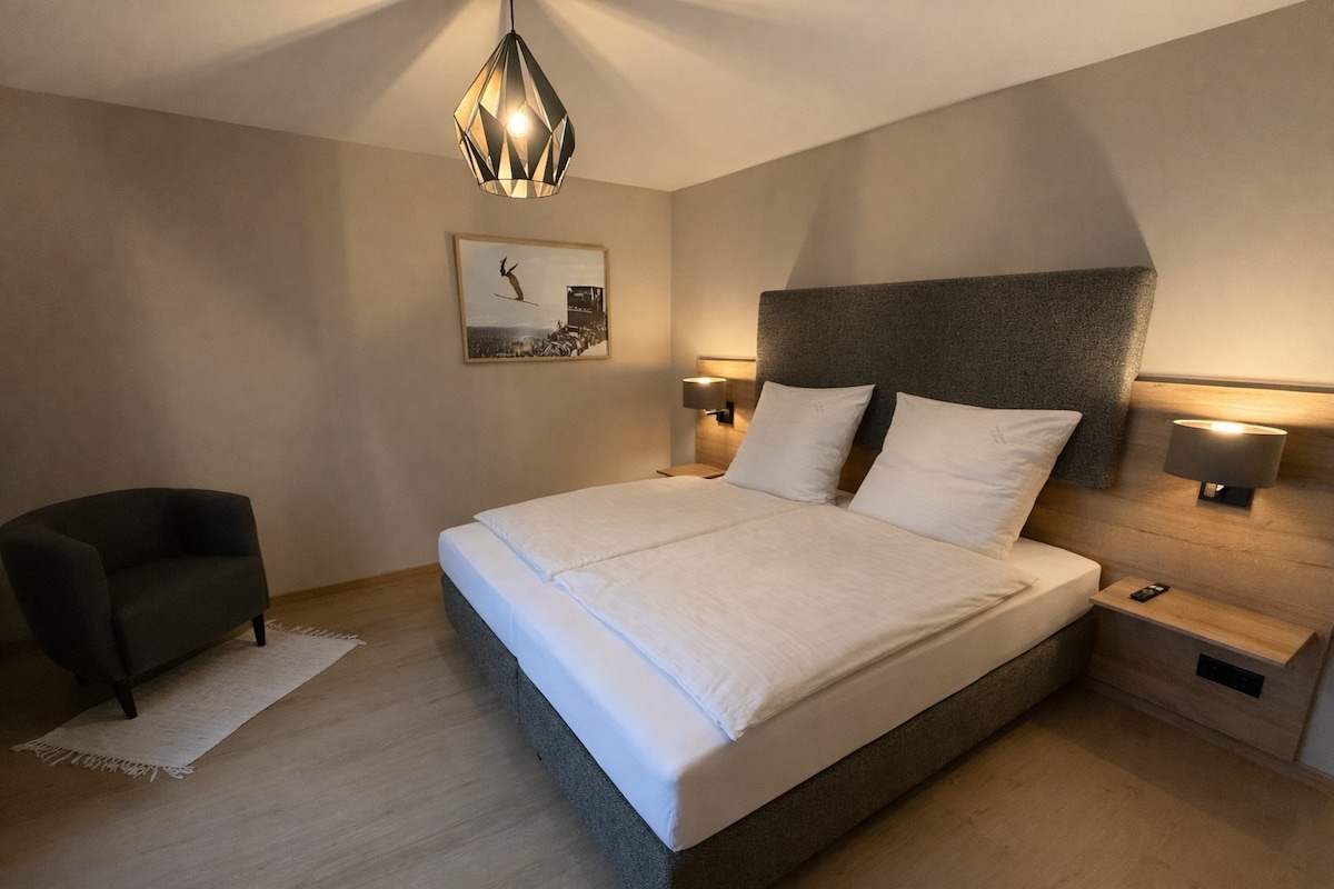 Բացառիկ, լուսավոր բնակարան՝ 2 առանձին ննջասենյակով, որը գտնվում է բարձրացված առաջին հարկում։ Բնակարանը ամբողջությամբ վերանորոգվել և կահավորվել է մանրամասների հանդեպ մեծ սիրով։ Բնակարանը շատ հանգիստ է՝ անտառի եզրին։ Արշավային արահետները սկսվում են անմիջապես տան հետևից ։ Վուրմբերգի ճոպանուղին և Կուրպարկը գտնվում են քայլելու հեռավորության վրա։ Մի քանի րոպեում կարող եք նաև քայլել մինչև քաղաքի կենտրոն։ Հարմար է 4 հյուրի համար ։ Տան դիմաց կա անվճար կայանատեղ։