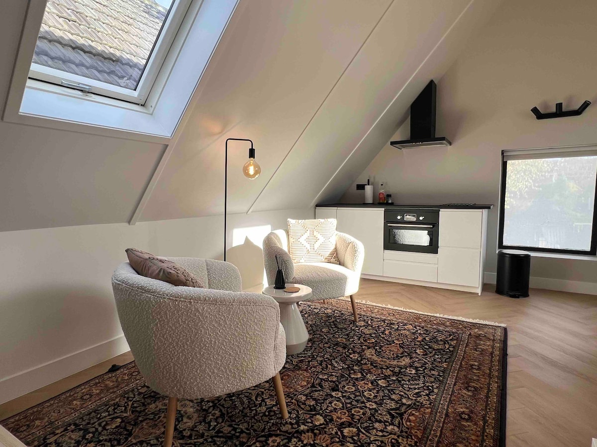 Հանգիստ, ոճային ստուդիա, որը գտնվում է Ուտրեխտում ՝ անվճար կայանատեղիով ։ Ստուդիան կառուցված է վերջերս վերանորոգված հին ամբարի վերևում և գտնվում է մոնումենտալ քաղաքային ագարակում ։ Ստուդիան ամբողջությամբ վարձակալի համար է և առանձնացված է մեր ընտանեկան տնից: Ստուդիան հասանելի է պարտեզից և ունի սեփական մուտք ՝ սանդուղքով դեպի առաջին հարկ ։ Այգին ունի ձեր այցի ընթացքում 1 մեքենա անվճար կայանելու տեղ ։