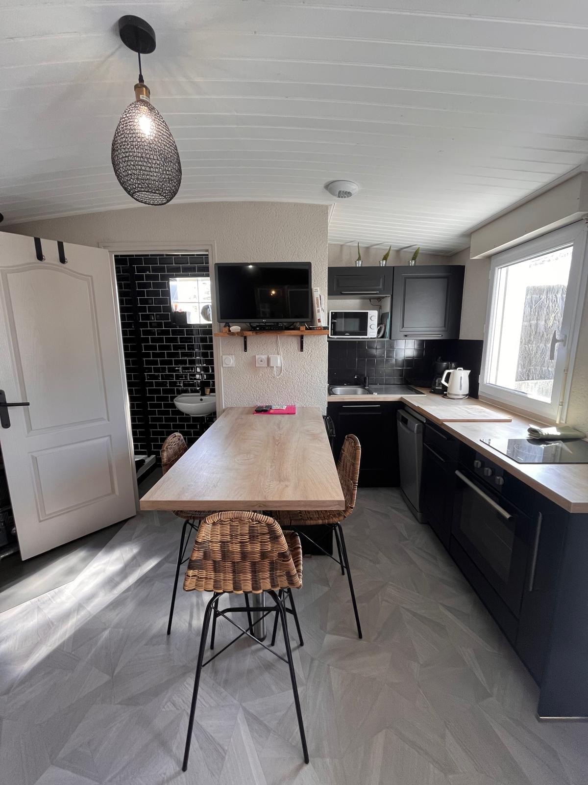 Մեր տան ընդարձակ տարածքում, որը գտնվում է գյուղից 850 մ հեռավորության վրա, Լե Գրանգես լողափից 2 կմ հեռավորության վրա և Vélodyssée երթուղուն մոտ, մենք առաջարկում ենք անկախ ստուդիա ՝ իր կամրջակի սենյակով, որն ունի 140x190 մահճակալ: Մուտքը կատարվում է ջրաղացի աստիճաններով ։ Խոհանոցիկը լրացնում է այս տարածքը (միկրոալիքային վառարան, լվացարան, փոքր սառնարան, թեյնիկ) Տրամադրվում է անկողնային և լոգարանի սպիտակեղեն ։ Դուք ունեք ներքևում գտնվող սենյակ ՝ իր հանգստի գոտիով, և ցնցուղի սենյակ ՝ ճոպանուղով ։