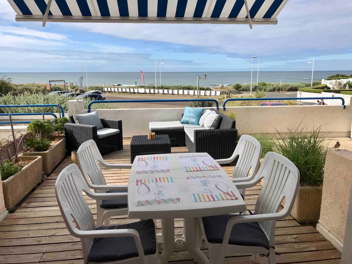 Les pieds dans l’eau à St- Gilles-Croix-de-Vie! Studio de 26m2! Cuisine équipée d’un réfrigérateur, plaque induction, lave-vaisselle et Nespresso... Pièce de vie avec canapé convertible et coin repas. Toilette séparé et salle de douche. Terrasse de 6m2 vue sur l'océan. L’appartement se situe à 5mins du centre ville en ballade. Marchés alimentaires côté St Gilles et côté Croix de Vie, casino, bowling, cinéma... Aucune route à traverser pour la plage, l’ascenseur vous y emmènera!!!
