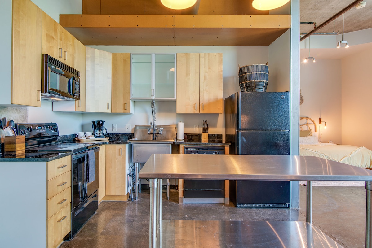 Պատրաստեք ամբողջական խոհանոցում և ճաշեք հատուկ այդ տարածքի համար նախատեսված աթոռով սեղանի շուրջ։ Ժամանակակից շքեղություն, պարզություն՝ պղնձե ծորակների ոճով, ժամանակակից լուսավորություն և գեղեցիկ հատակներ։ Լավ լուսավորված տարածքը շատ հարմարավետ է, ունի երկտեղանի մահճակալ-բազմոց, մեկ ննջասենյակ՝ 183 սմ մահճակալով, և մեկ ննջասենյակ՝ 152 սմ մահճակալով և լրացուցիչ հարմարավետ մահճակալներով։ Բաց հատակագծի շնորհիվ լոֆթը շատ ընդարձակ է թվում։ Տեղադրությունը ամեն ինչ է, և մենք գտնվում ենք քաղաքի կենտրոնից 5 րոպե հեռավորության վրա, բայց թաքնված ենք հանգիստ թաղամասում։ Կարճաժամկետ վարձակալության թույլտվություն № --2016071615
