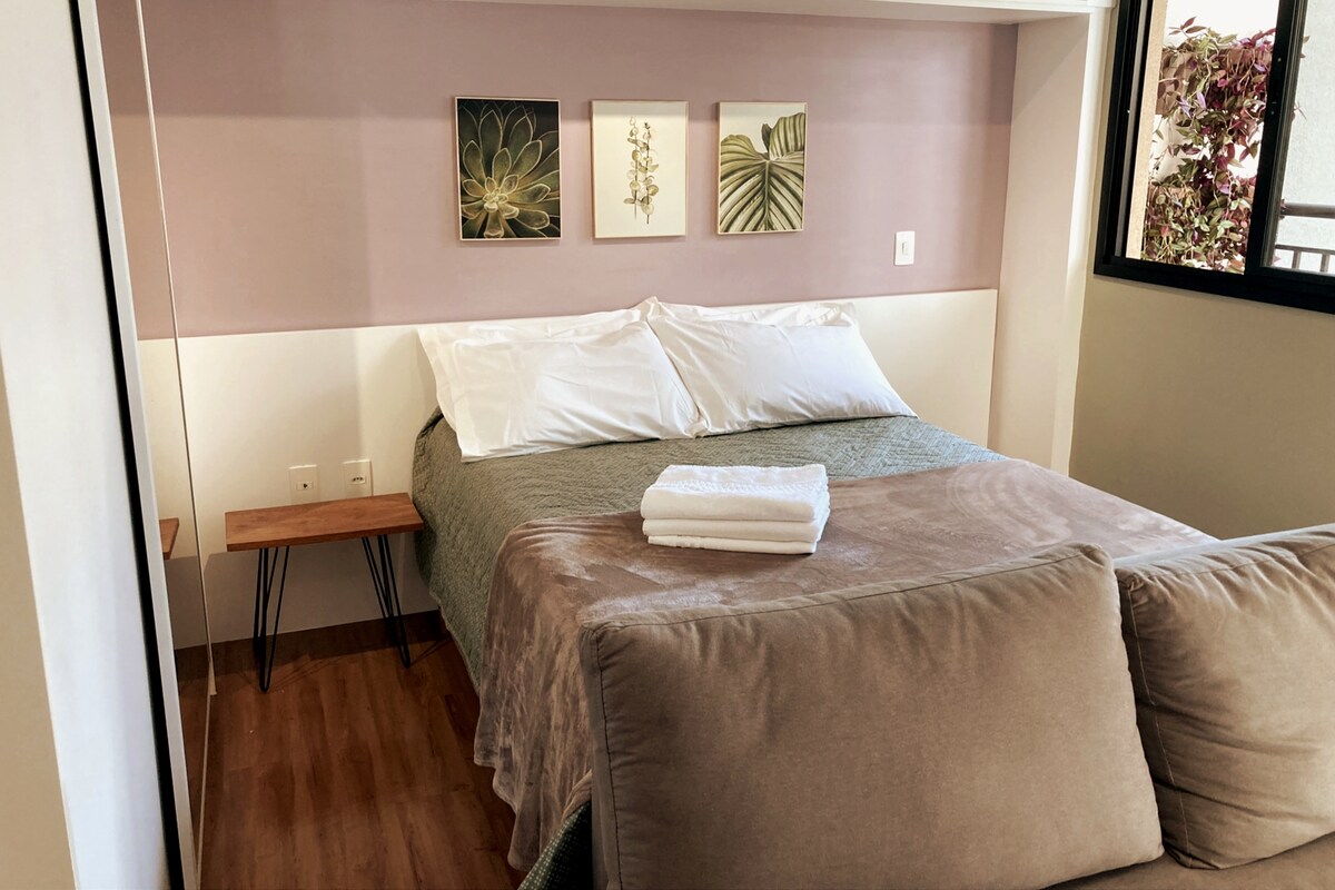 Come live the experience of staying at Senses Z Pinheiros, designed to provide maximum comfort and pleasure during your stay. It´s located on R. Pinheiros, currently one of the most popular streets in SP with restaurants, cafes and shops. Enjoy the district with the bike provided for free by Senses. The building is very safe, it has a gym and a 24h micro market available. The studio has a 50”tv (Netflix), AC, queen size bed, full kitchen... and there is also a small charming green balcony.